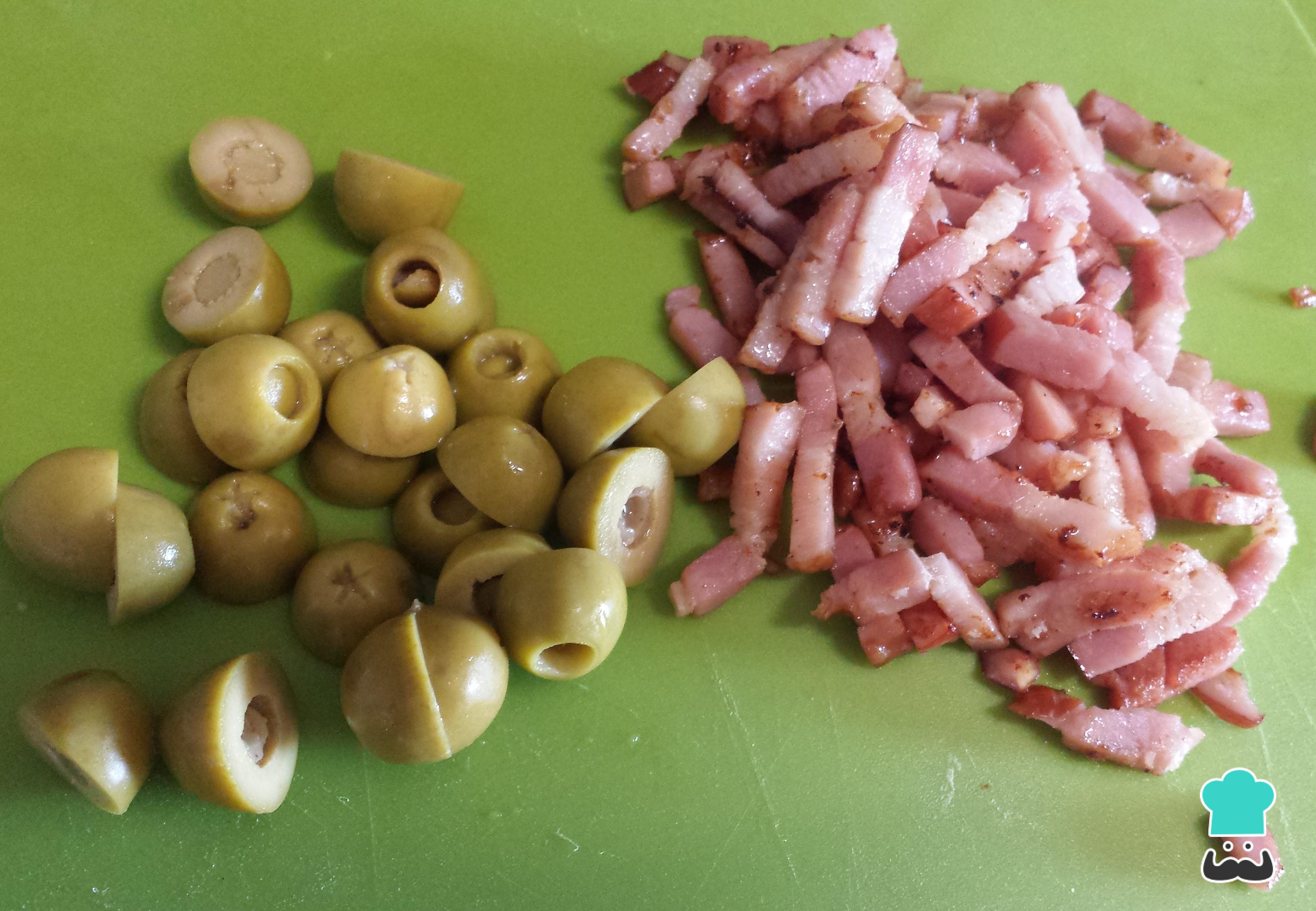 Puedes usar aceitunas rellenas de anchoa o de pimentón, las que más te gusten. Lo importante es que, en todo caso sean, aceitunas sin hueso.