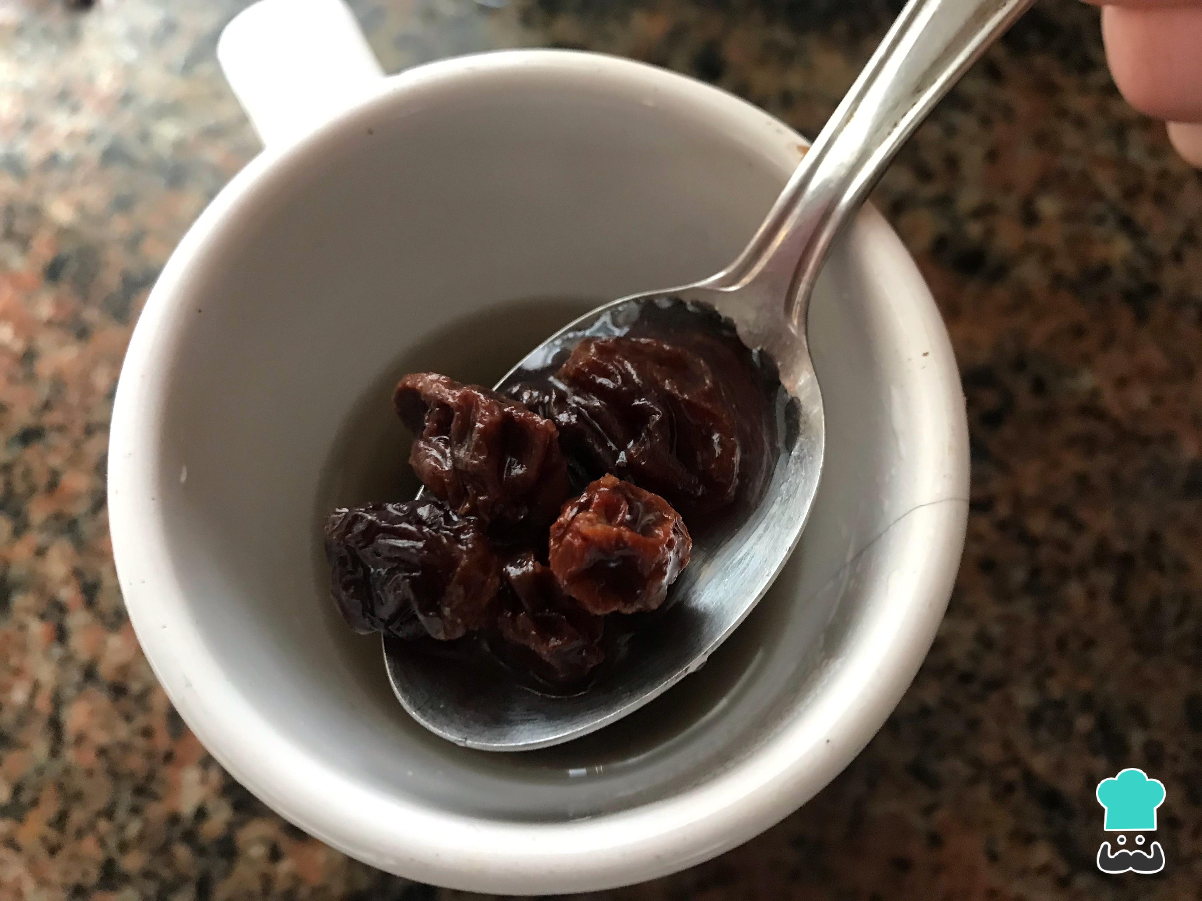 Para empezar a preparar esta sencilla, pero deliciosa y saludable ensalada de arroz con lechuga, hidrata las pasas de uva en agua caliente.