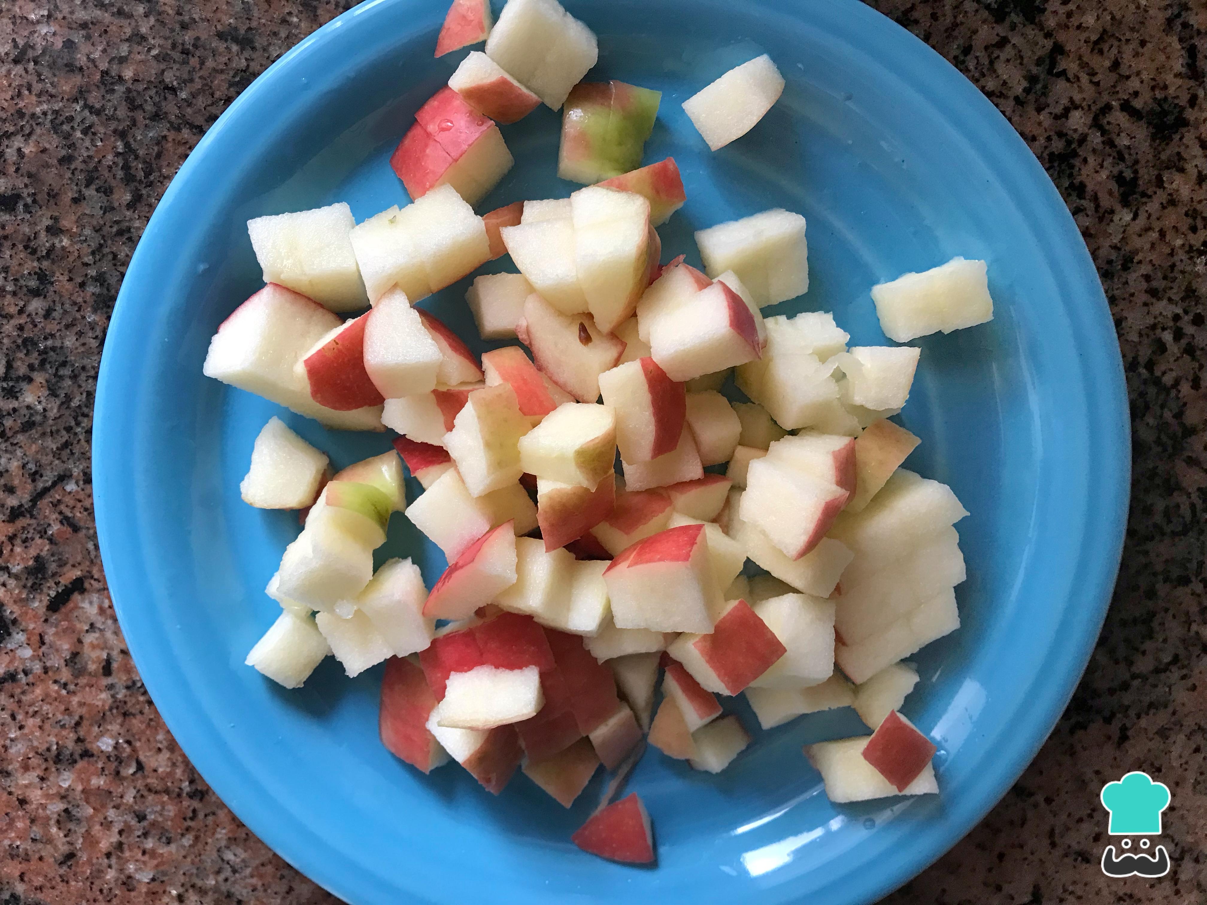 Limpia con un cepillo de alimentos la manzana y córtala en cubos pequeños, retirando el cabo, el centro y las semillas. Si quieres hacer la ensalada de arroz con lechuga más completa, puedes añadir otras frutas como pera e incluso naranja.