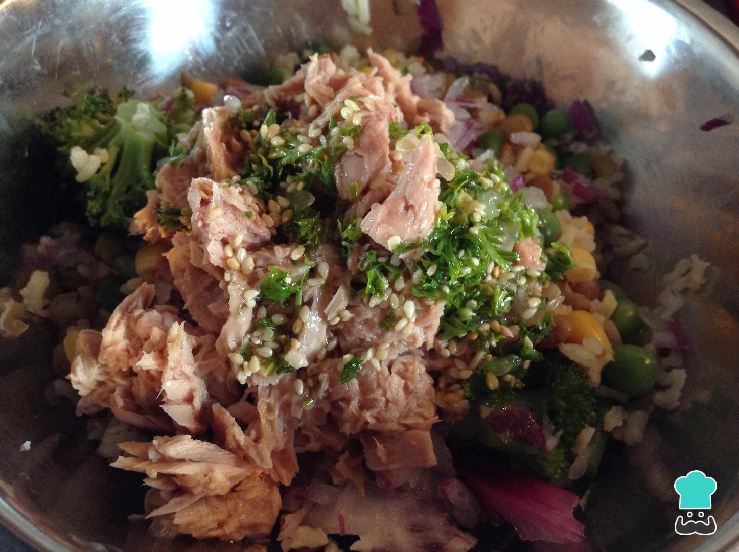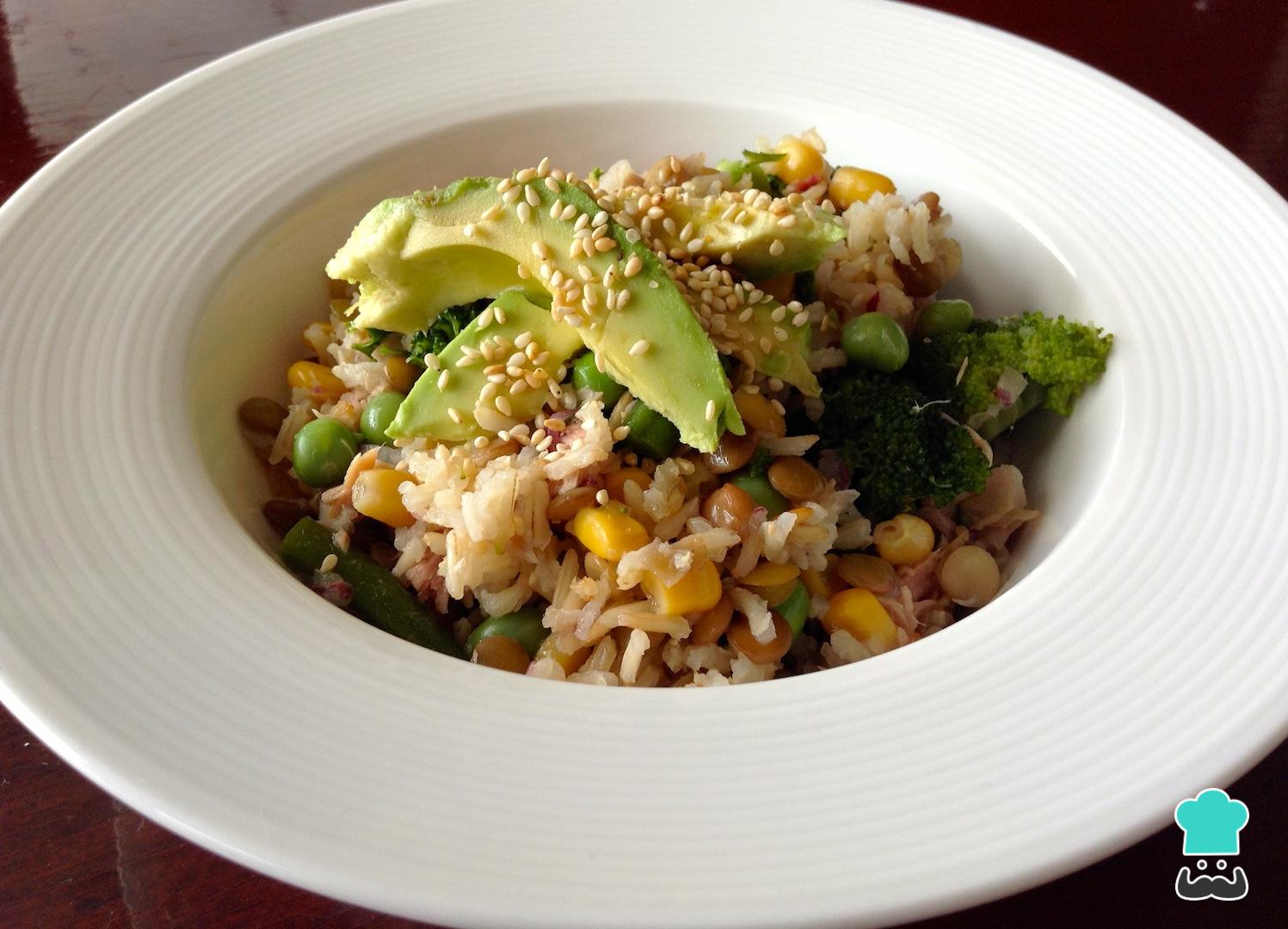 En RecetasGratis siempre pensamos en los diferentes gustos de las personas, por eso realizamos platos tan variados. En esta ocasión vamos a preparar una deliciosa ensalada de arroz integral, acompañada de ingredientes saludables como verduras y una proteína muy popular, el atún. Debemos recordar que el atún es un pescado que contiene ácidos grasos Omega 3, disminuye los niveles de colesterol y triglicéridos en la sangre, por ello, se recomienda su consumo. También es rico en vitaminas del complejo B, A y D.