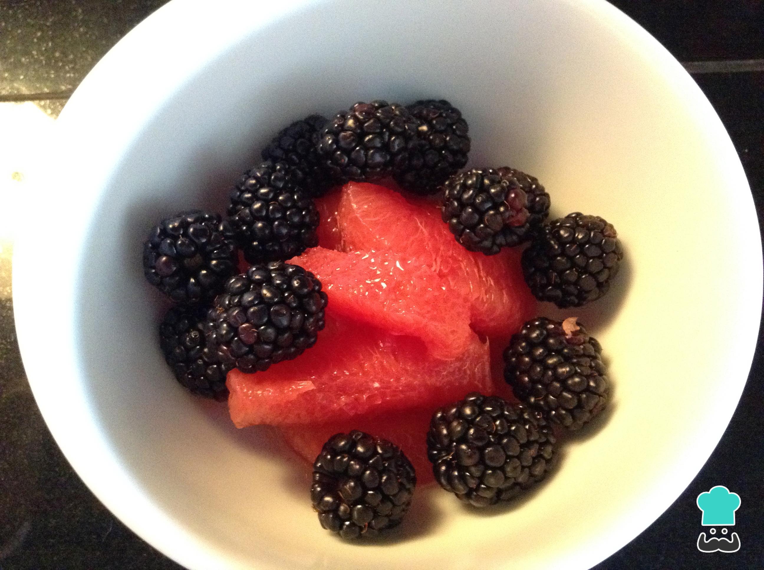 En un bowl hondo adicionar la toronja y las moras o blackberry.Mezclar bien.