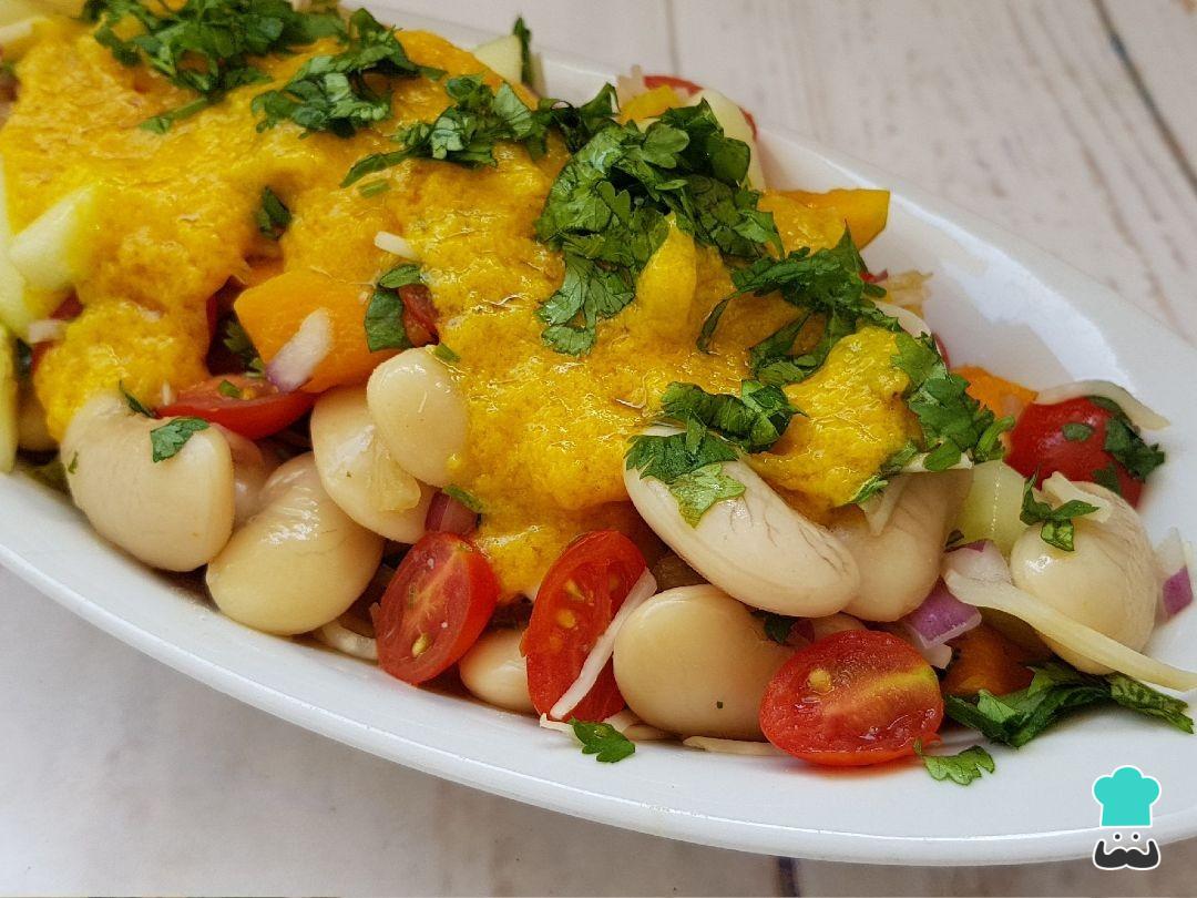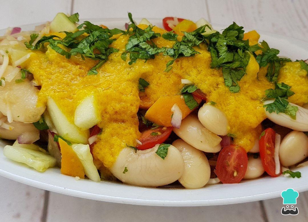 Otras opciones para aliñar esta ensalada de judías blancas son esta receta de vinagreta de limón y albahaca o esta de vinagreta de aguacate.