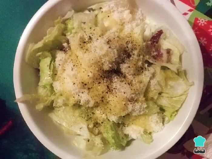 Sirve la ensalada de lechuga con parmesano y disfruta de todo el sabor de este sencillo plato.