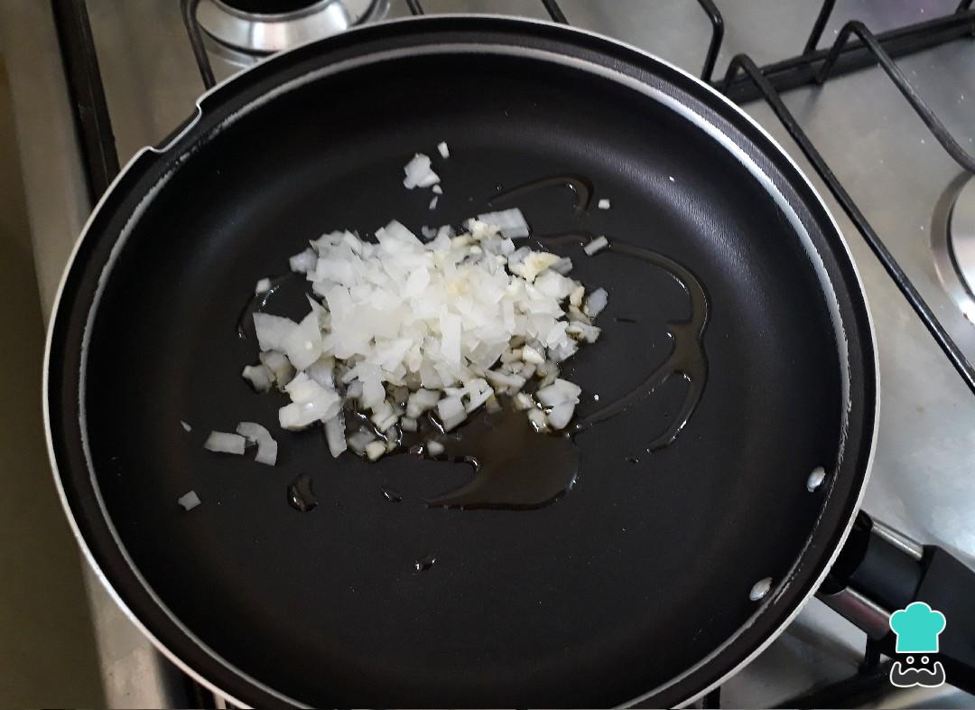 Primero, ponemos la pasta a hervir. Luego, sofreímos la cebolla y el ajo en una sartén con un poco de aceite de oliva caliente. También podemos incorporar estos ingredientes crudos a la ensalada de pasta con atún, pero de esta forma queda mucho más sabrosa. Retiramos del fuego cuando estén listos estos ingredientes y colamos la pasta una vez cocida.