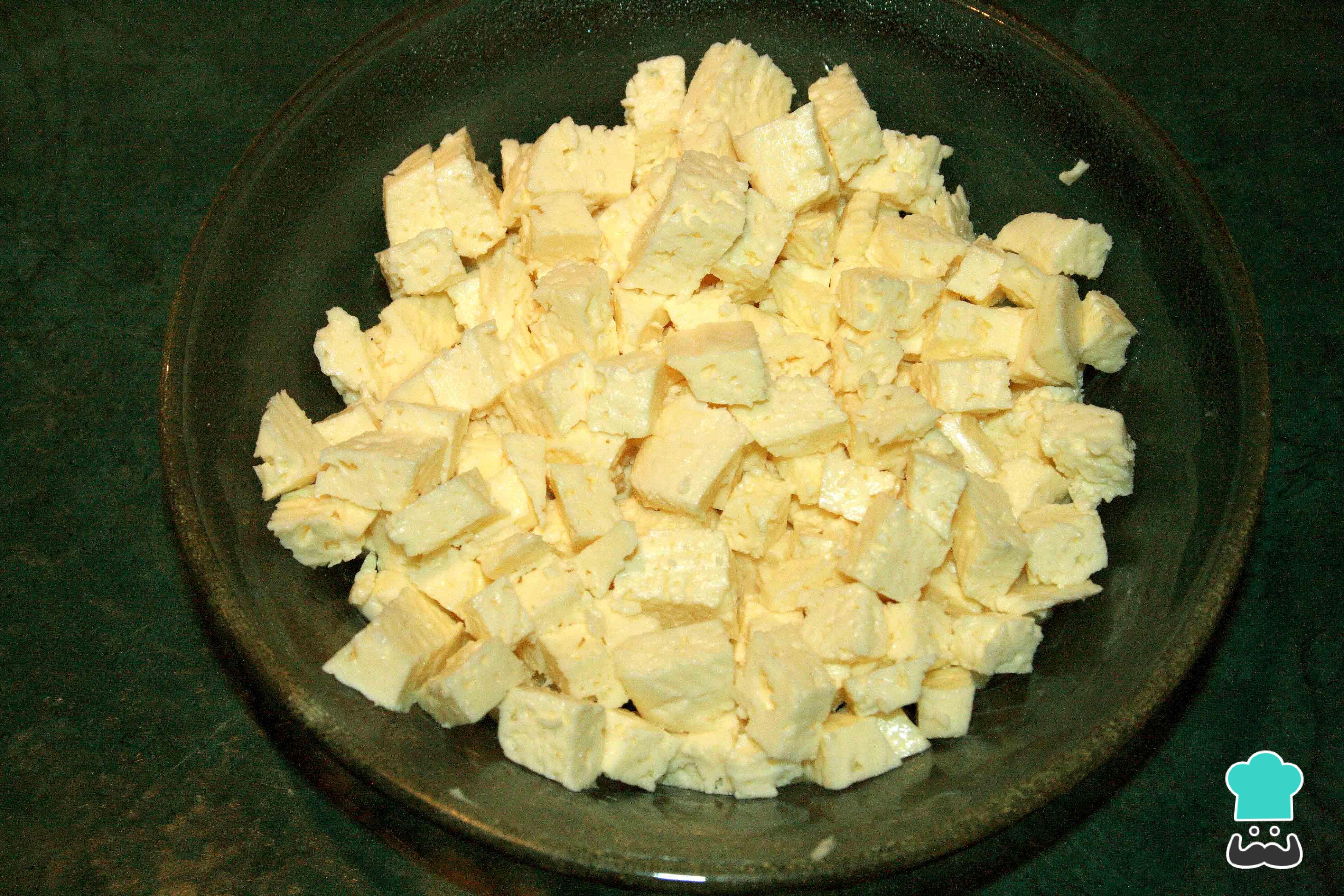 Abre las lata de atún y maíz, pica el queso en cuadritos y reserva todos estos ingredientes.