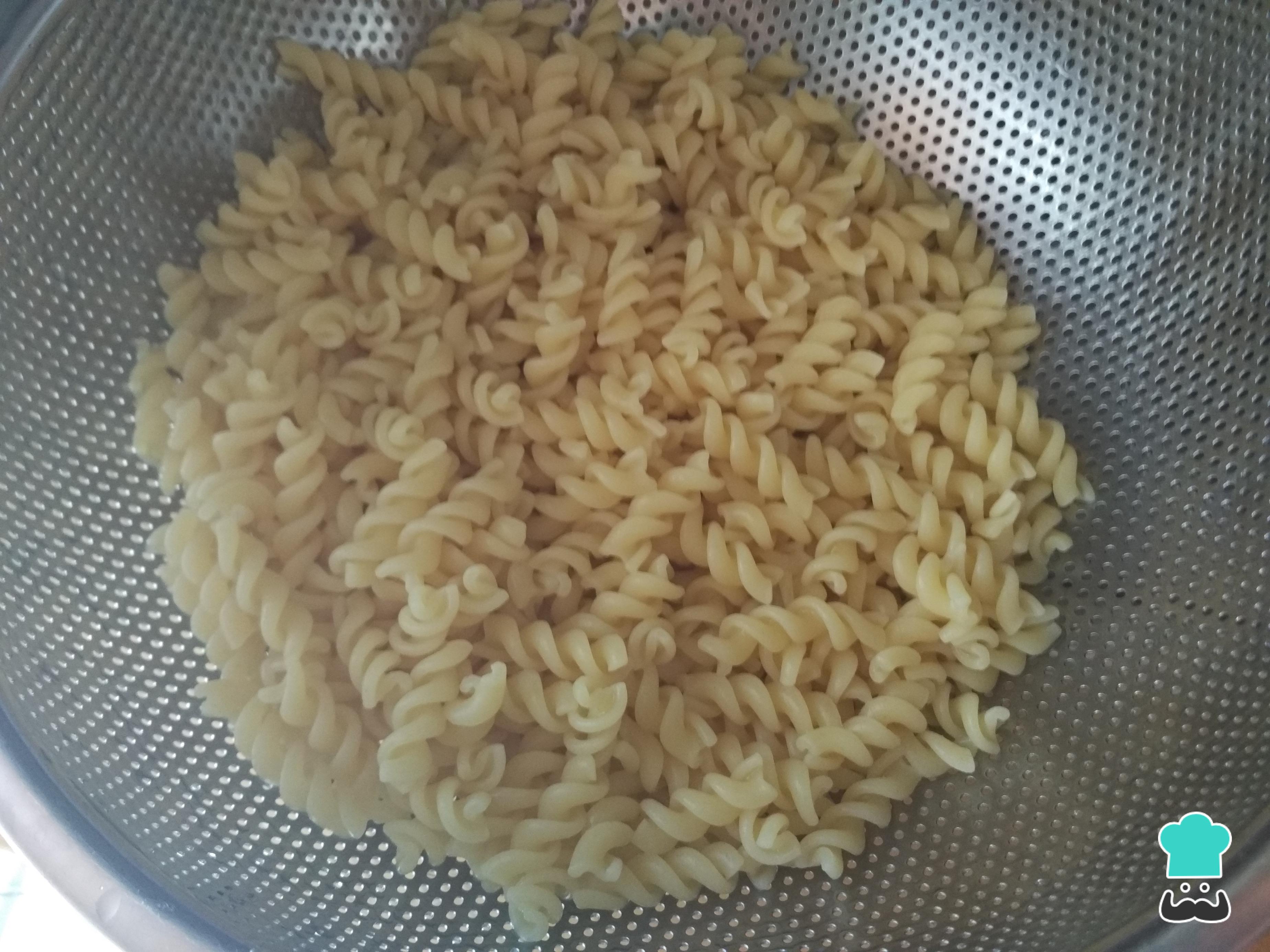 En primer lugar, cocemos la pasta en abundante agua caliente con una pizca de sal. Una vez cocida, enfriamos con agua fría y escurrimos.
