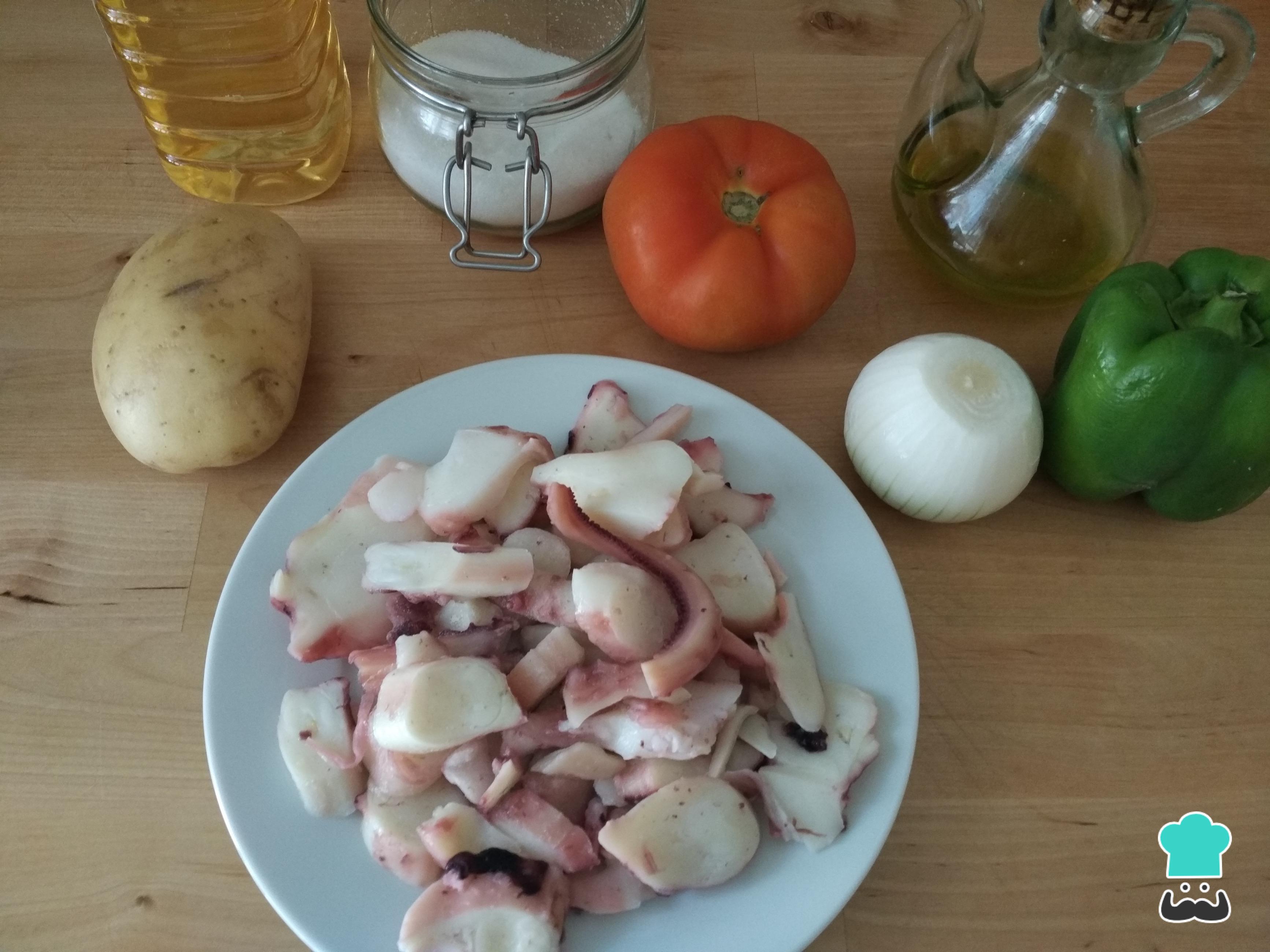 Reunimos todos los ingredientes para elaborar la ensalada de pulpo y patatas. Si os sobra pulpo, podéis aprovechar para preparar unos deliciosos tacos de pulpo.