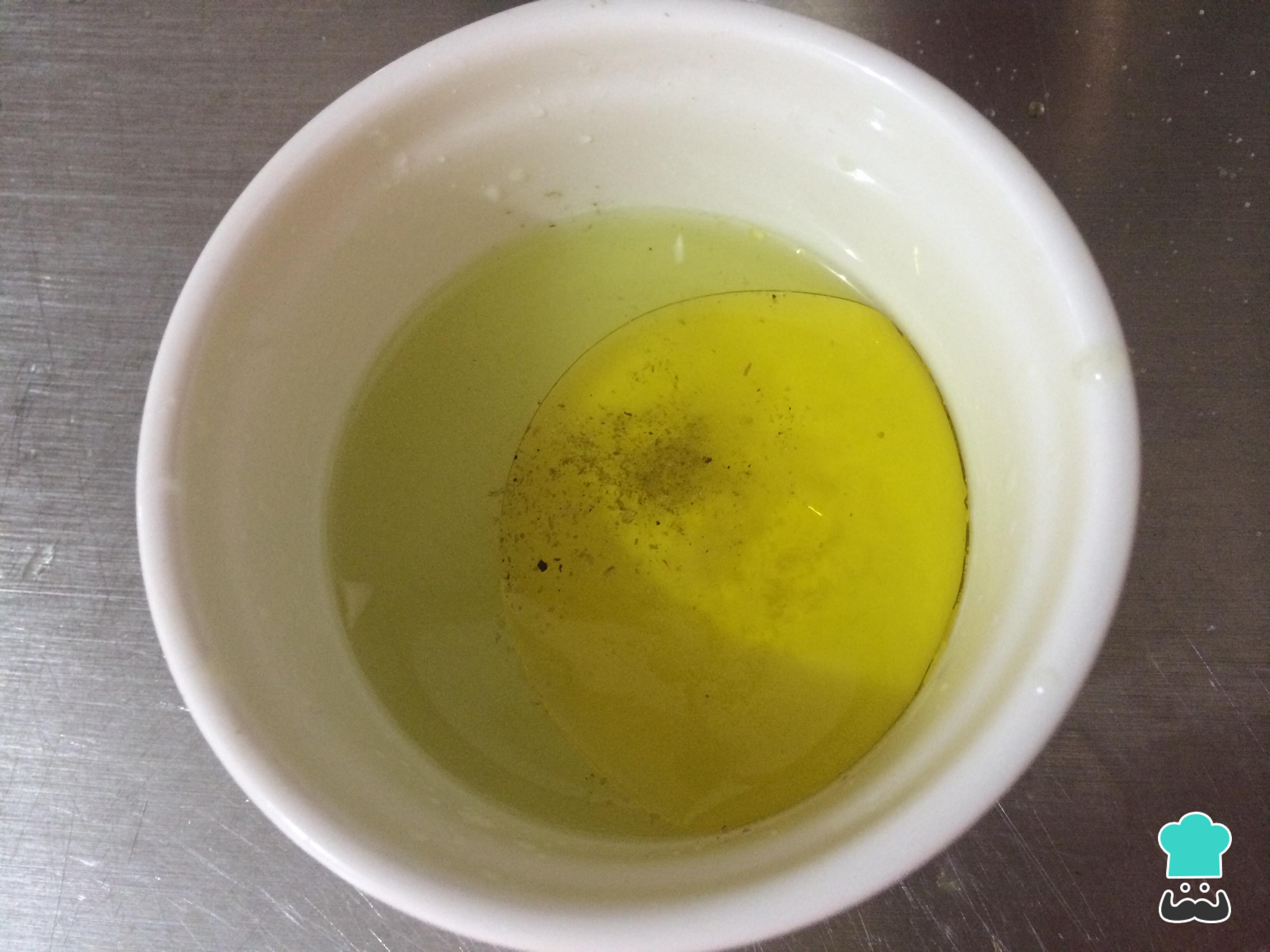 Para la vinagreta mezclar el aceite de oliva y el zumo de limón, salpimentar, batir hasta obtener una consistencia estable.