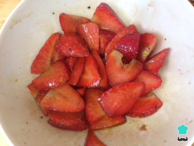 Maceramos las fresas durante 4 minutos en el aliño que hemos preparado.