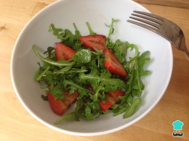 Mezclamos la rúcula con las fresas y ya está lista nuestra ensalada para adelgazar. Si queréis conocer otras ensaladas similares, probad la ensalada de calabacín crudo o la ensalada de bacalao y naranja. ¡Esperamos que os guste!