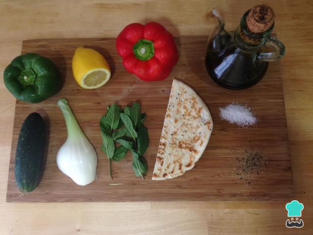 Reunimos todos los ingredientes para elaborar la ensalada libanesa fattoush.