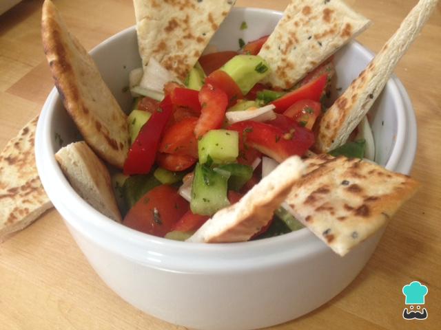 Desde RecetasGratis.net os presentamos la ensalada libanesa fattoush elaborada con verduras frescas, menta y pan de pita. El fattoush quiere decir "pan húmedo" en árabe y es una ensalada ligera típica del Líbano. ¡Animaos a probar este plato exótico y saludable!