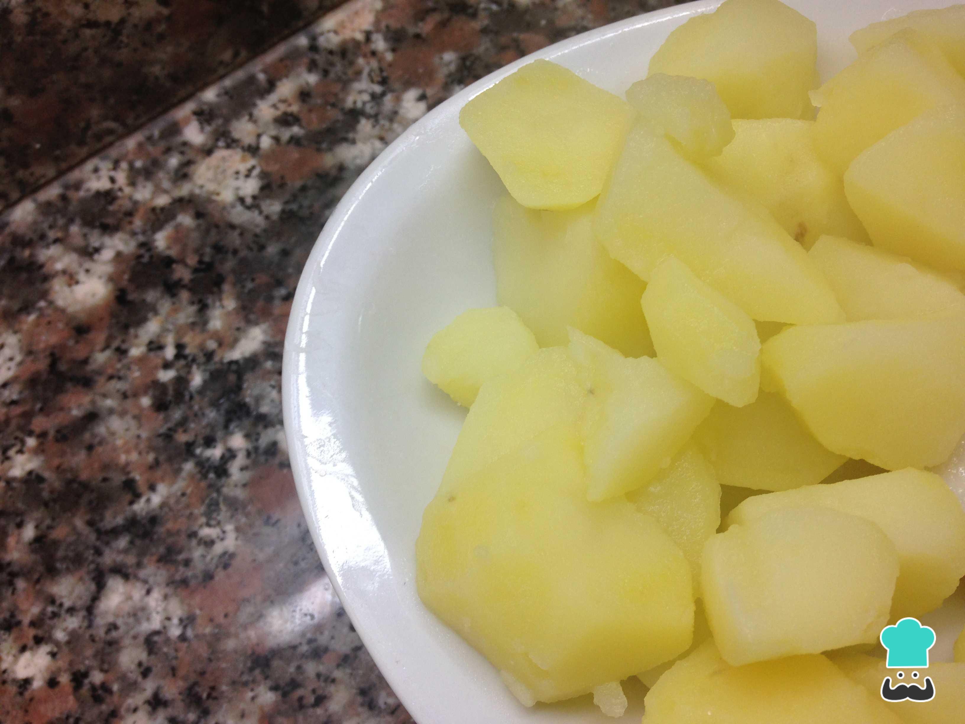 Las patatas, después de lavarlas, pelarlas y trocearlas, también las herviremos con agua.