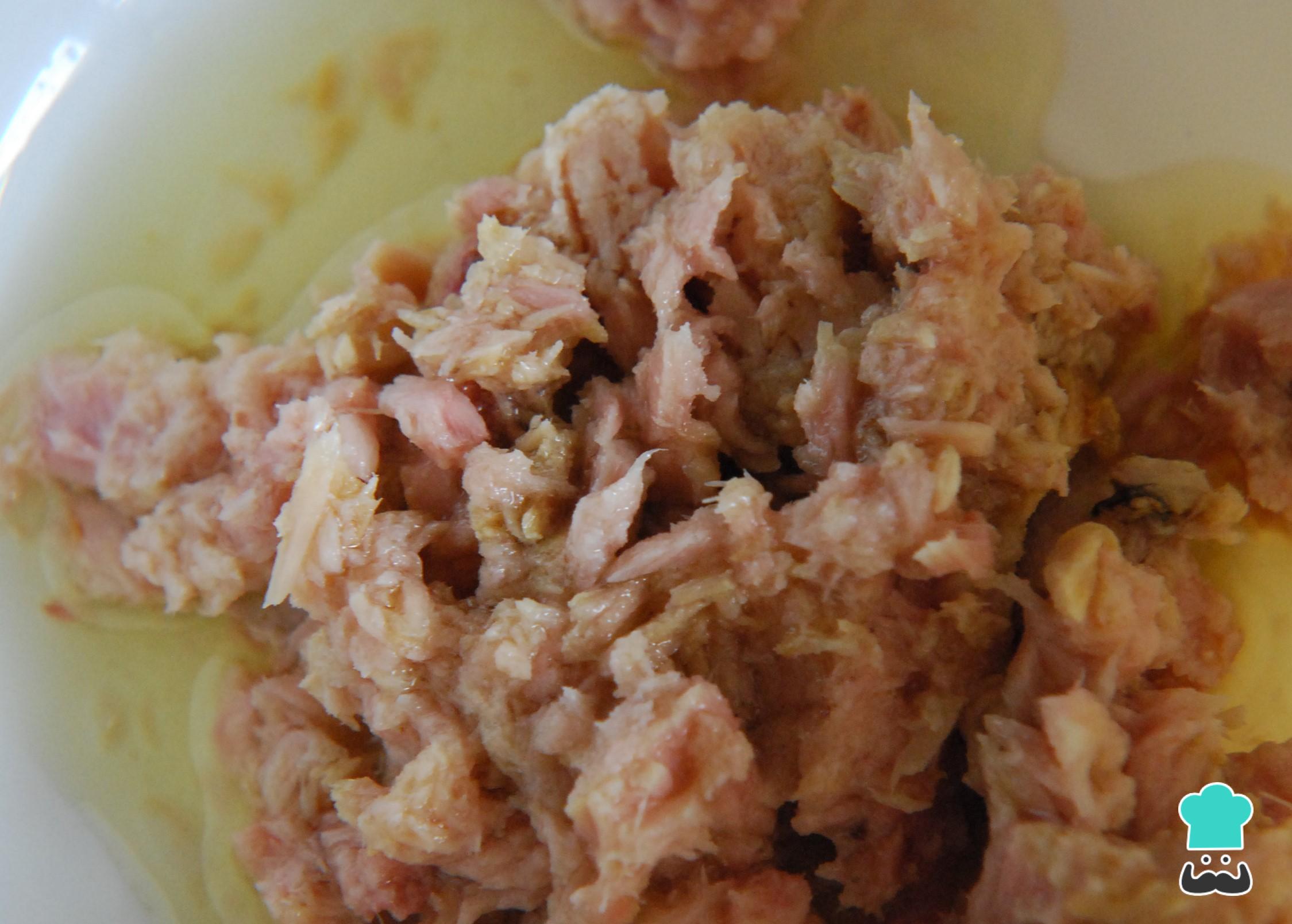 El primer paso de esta receta de ensalada verde es alistar los ingredientes. El primero de ellos es el atún, que para esta receta yo he utilizado una lata pequeña del que viene en aceite de oliva, pero puedes utilizar atún claro o en agua para hacer el plato más ligero.