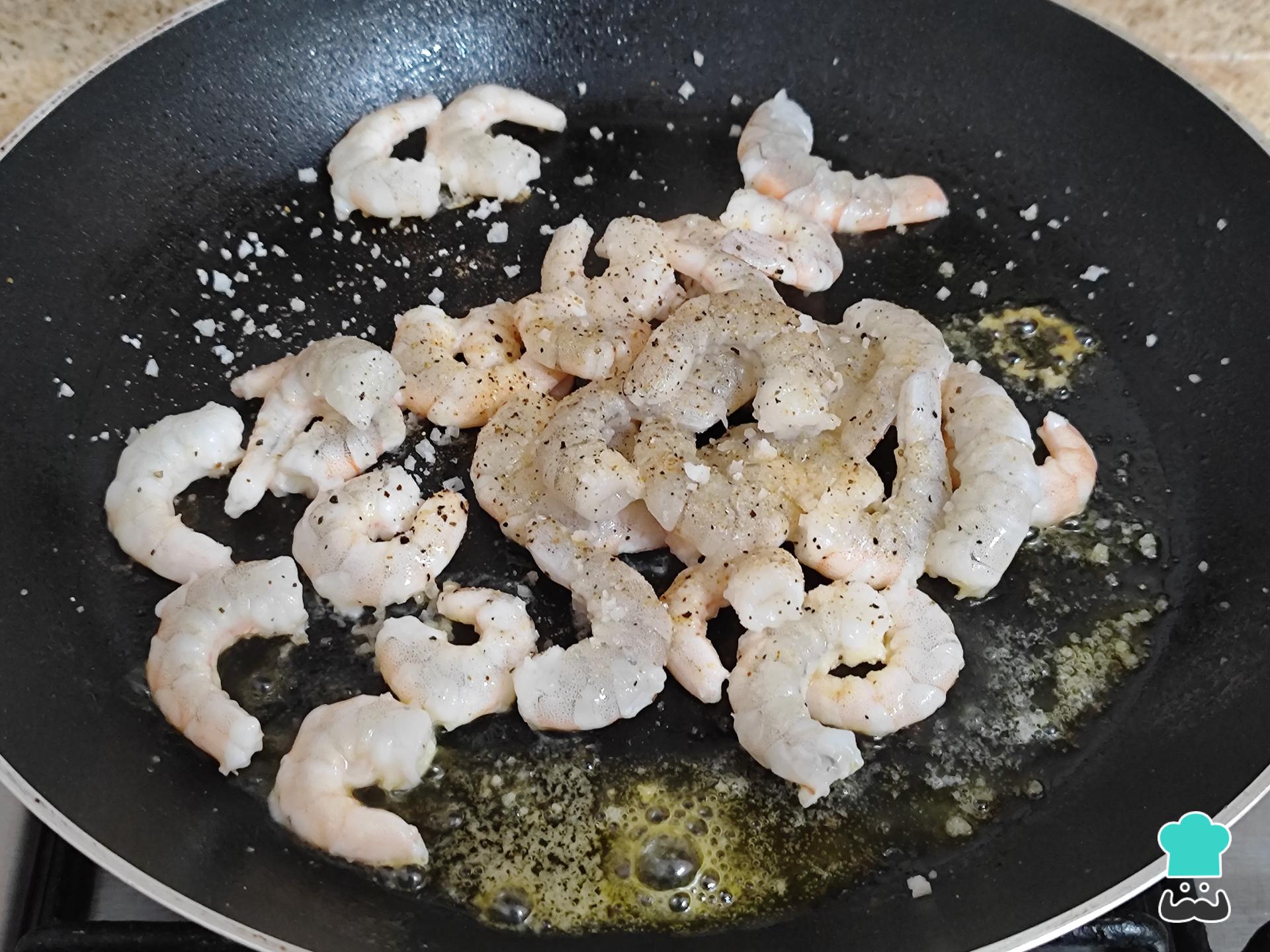 En una sartén grande, derrite la mantequilla y saltea los camarones durante 2 o 3 minutos por cada lado, hasta que adquieran un tono rosado. Retíralos y resérvalos.