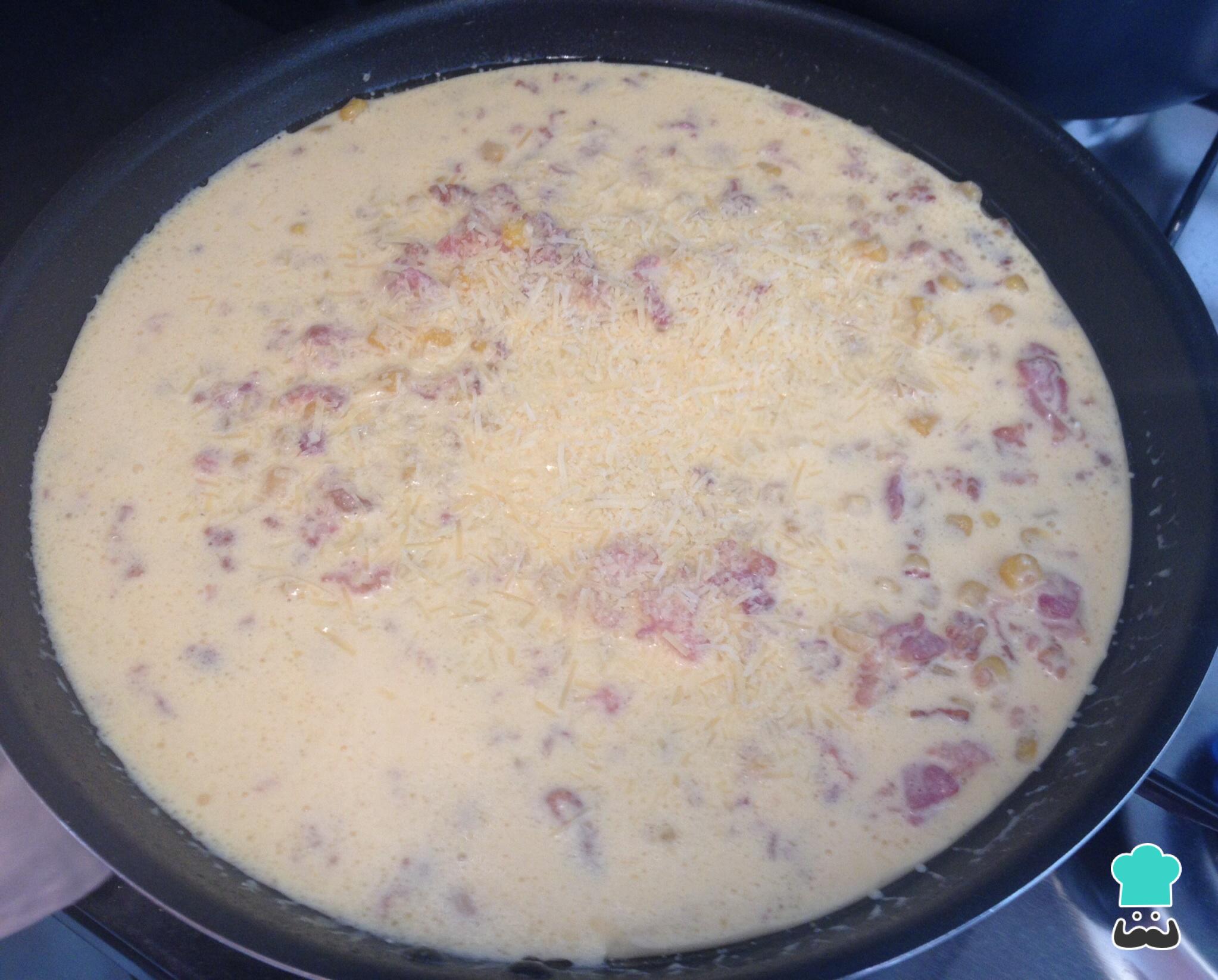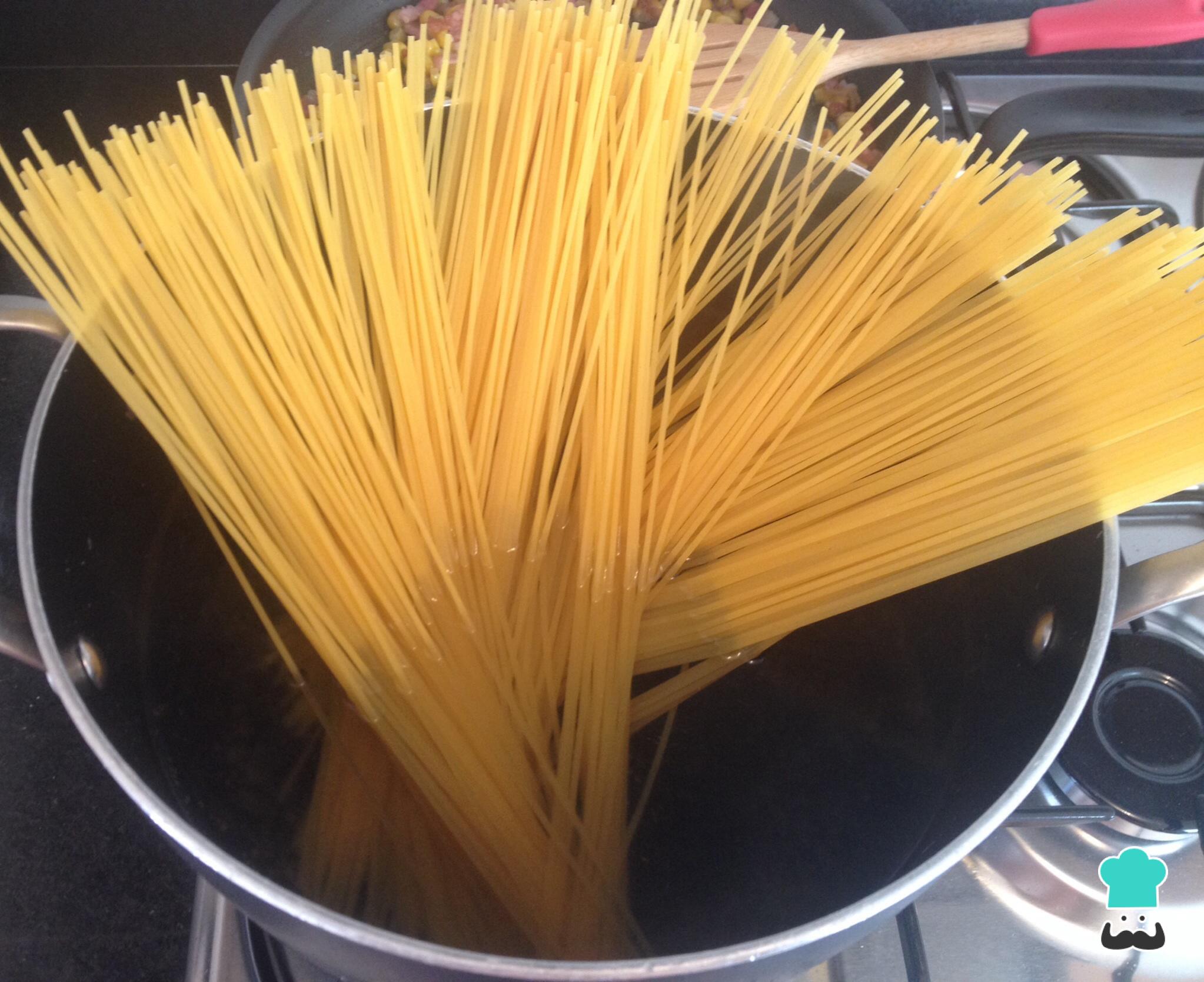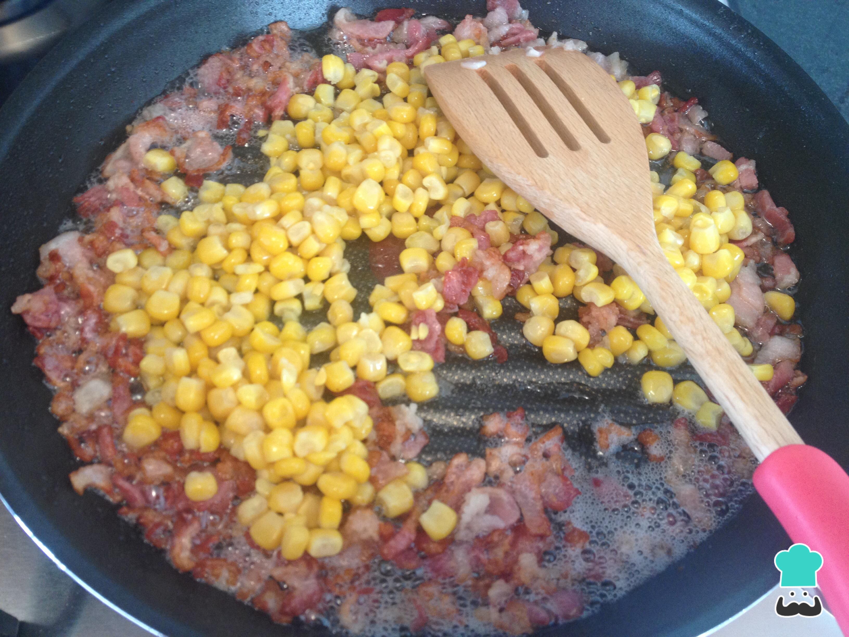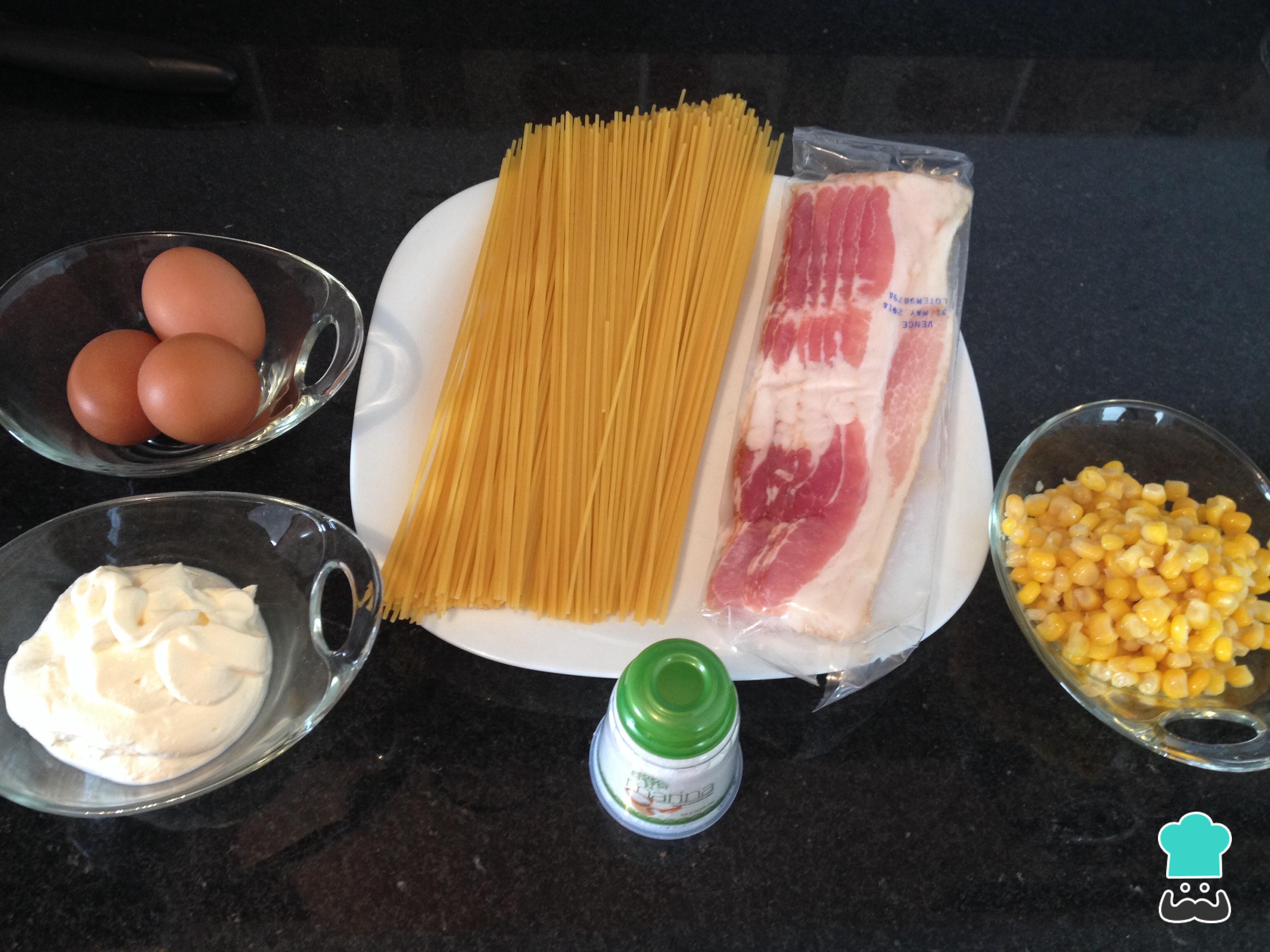 Cómo hacer Espaguetis a la carbonara con maíz: