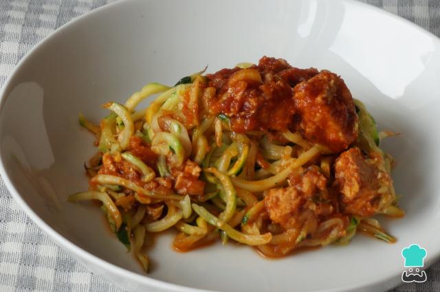 Esta receta es muy llamativa y versátil, hacer espaguetis con calabacín es original y podemos cocinarlos con muchos ingredientes, como atún, gambas, carne... El calabacín nos aporta vitaminas, minerales, fibra y antioxidantes y es muy bajo en calorías. El tomate, que lo usaremos para potenciar el sabor del plato, también también nos aporta muchas vitaminas y el atún proteínas, que en este caso es muy buena ya que es pescado azul. Para hacer los calabacines necesitaremos un espiralizador, un gadget de cocina para esta función, pero si no lo tienes, puedes hacer tiras con un pelador de patatas o zanahorias y luego con un cuchillo cortarlas más finas. Sigue leyendo para conocer más trucos y saber cómo hacer espaguetis de calabacín con atún en RecetasGratis.