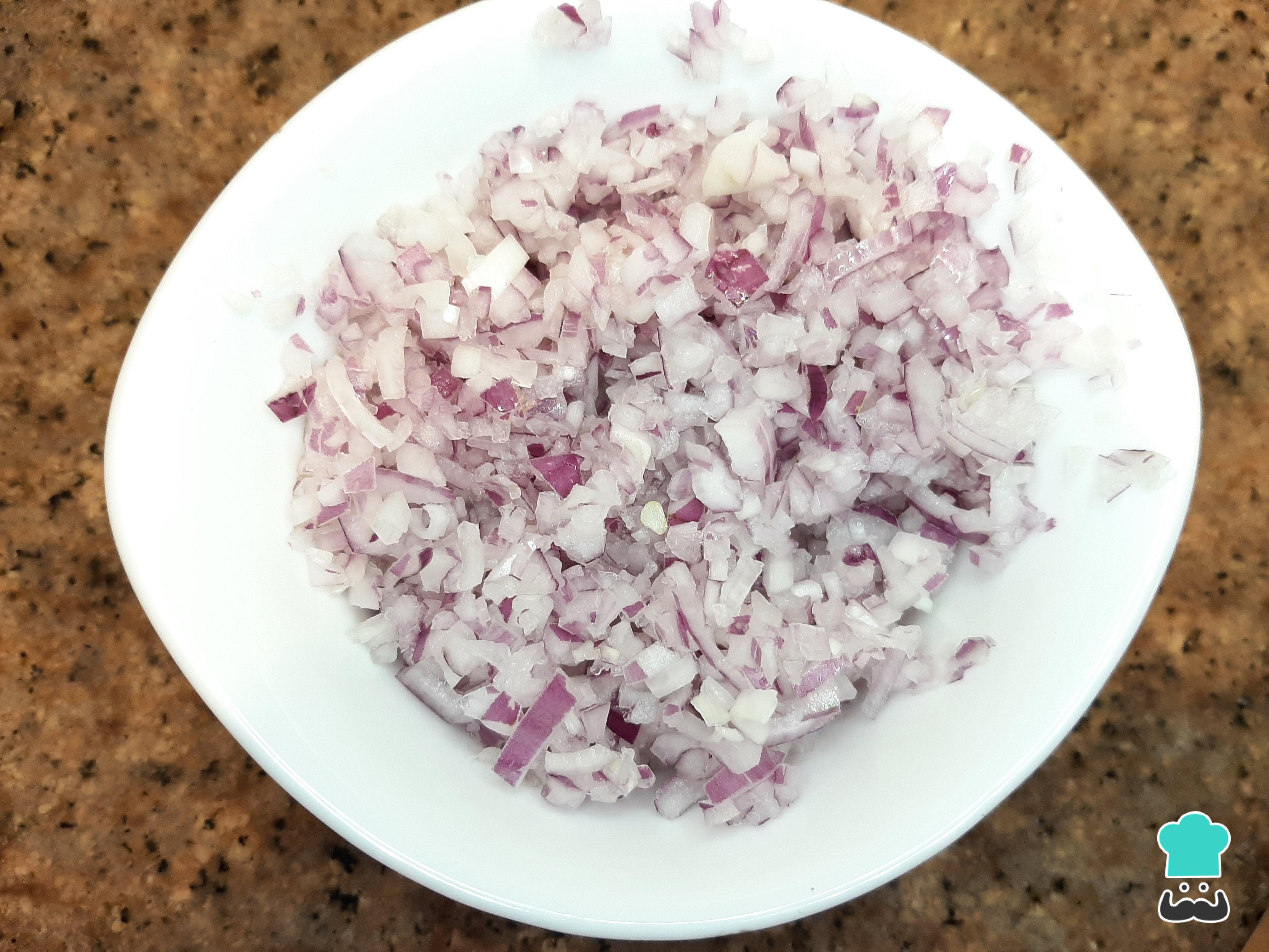 Lava y corta la cebolla morada en cuadraditos finos.
