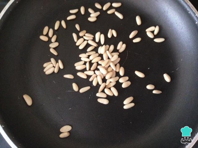 En una sartén salteamos los piñones hasta que queden dorados. Reservamos.