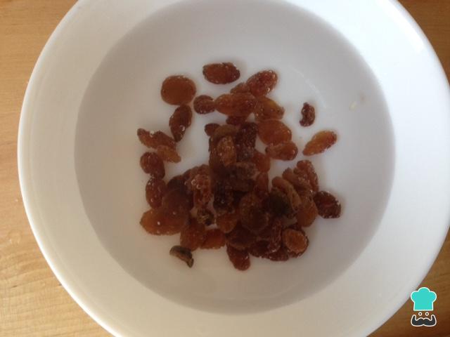 Por otra parte, vamos a hidratar las pasas en agua tibia durante 5 minutos.