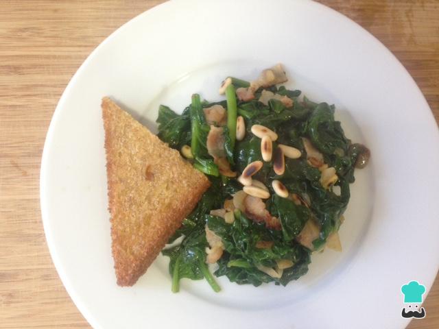 Servimos las espinacas a la catalana con la rebanada de pan frito a un lado. Si os interesan las recetas típicas de Cataluña, podéis probar la receta de escalivada catalana o la famosa crema catalana. ¡Buen provecho!