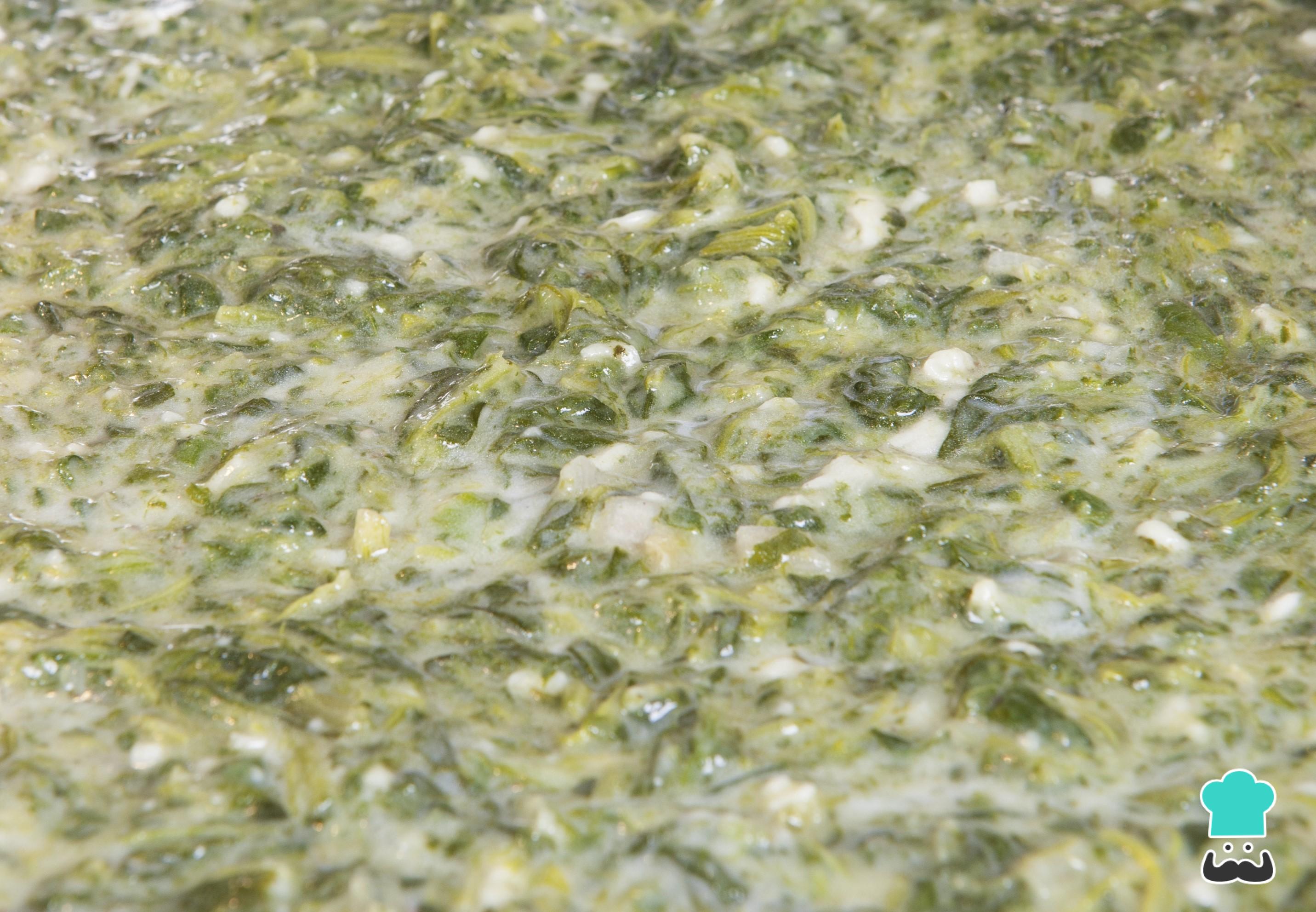 Una vez hecha, vierte la bechamel sobre las espinacas salteadas y mézclalas. Después pon el fuego bajo y añade las lonchas de queso. Remueve todo hasta que se haya fundido el queso y por último, agrega los piñones tostados y sirve tus ricas espinacas con bechamel mientras estén calientes.