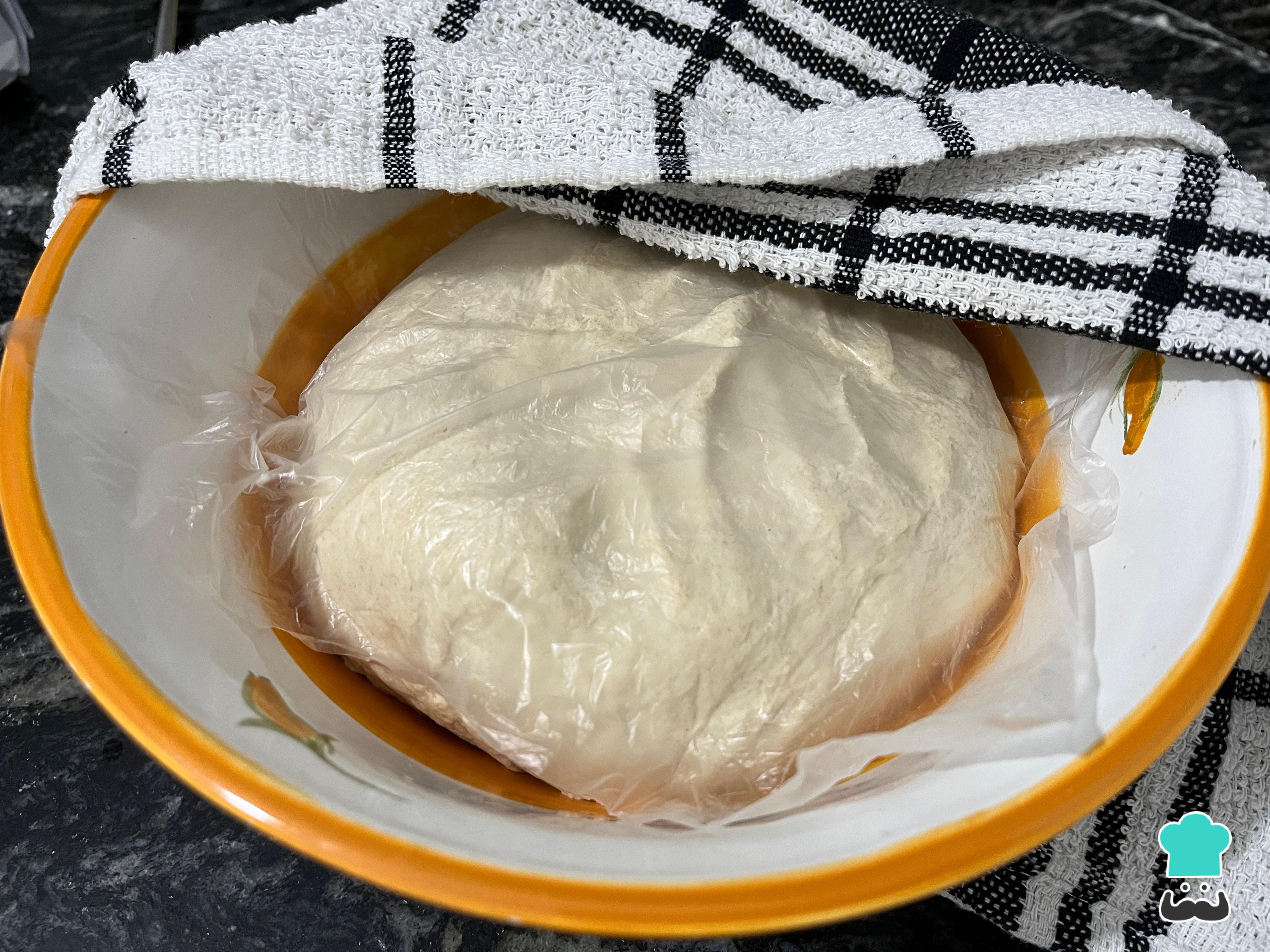 Amasa integrando los ingredientes del centro hacia afuera. Cuando tengas una masa lisa, llévala a un recipiente enharinado, tápala con un separador y, luego, con un repasador. Resérvala por unos 40 a 60 minutos hasta que duplique el volumen.