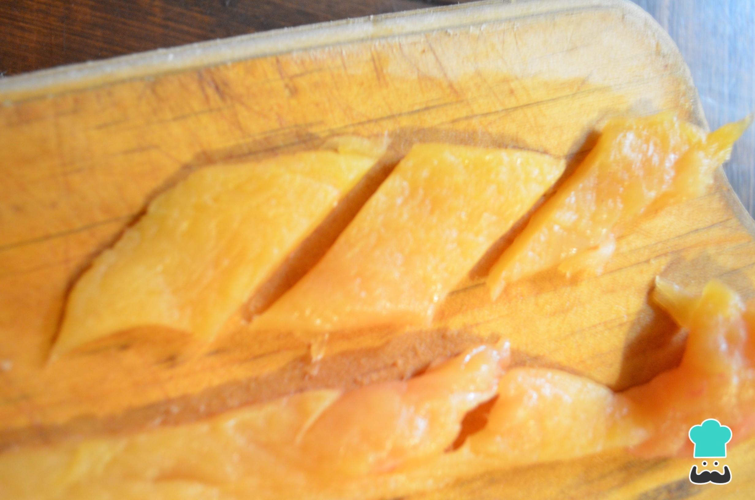 Aparte, cortaremos el pollo en fajitas o en tiritas. Sazonamos con sal y pimienta y reservamos.