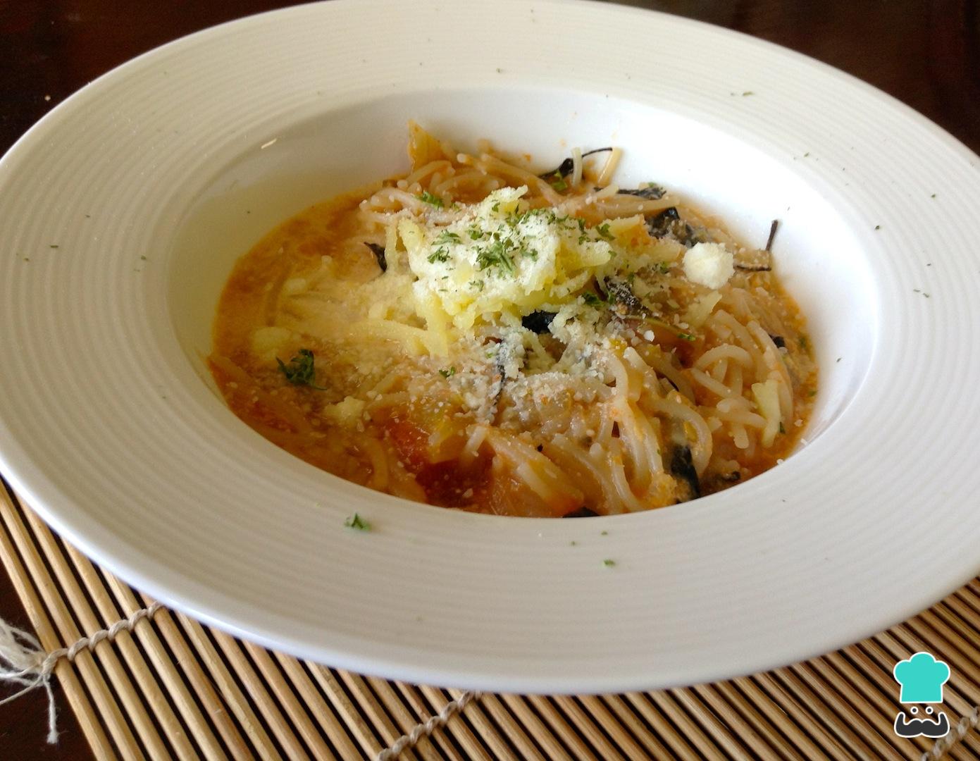 Adiciona los fideos cocinados a la sartén donde tenemos la salsa base. Deja conservar durante algunos minutos, teniendo cuidado para que no se sobrecocine la pasta.
