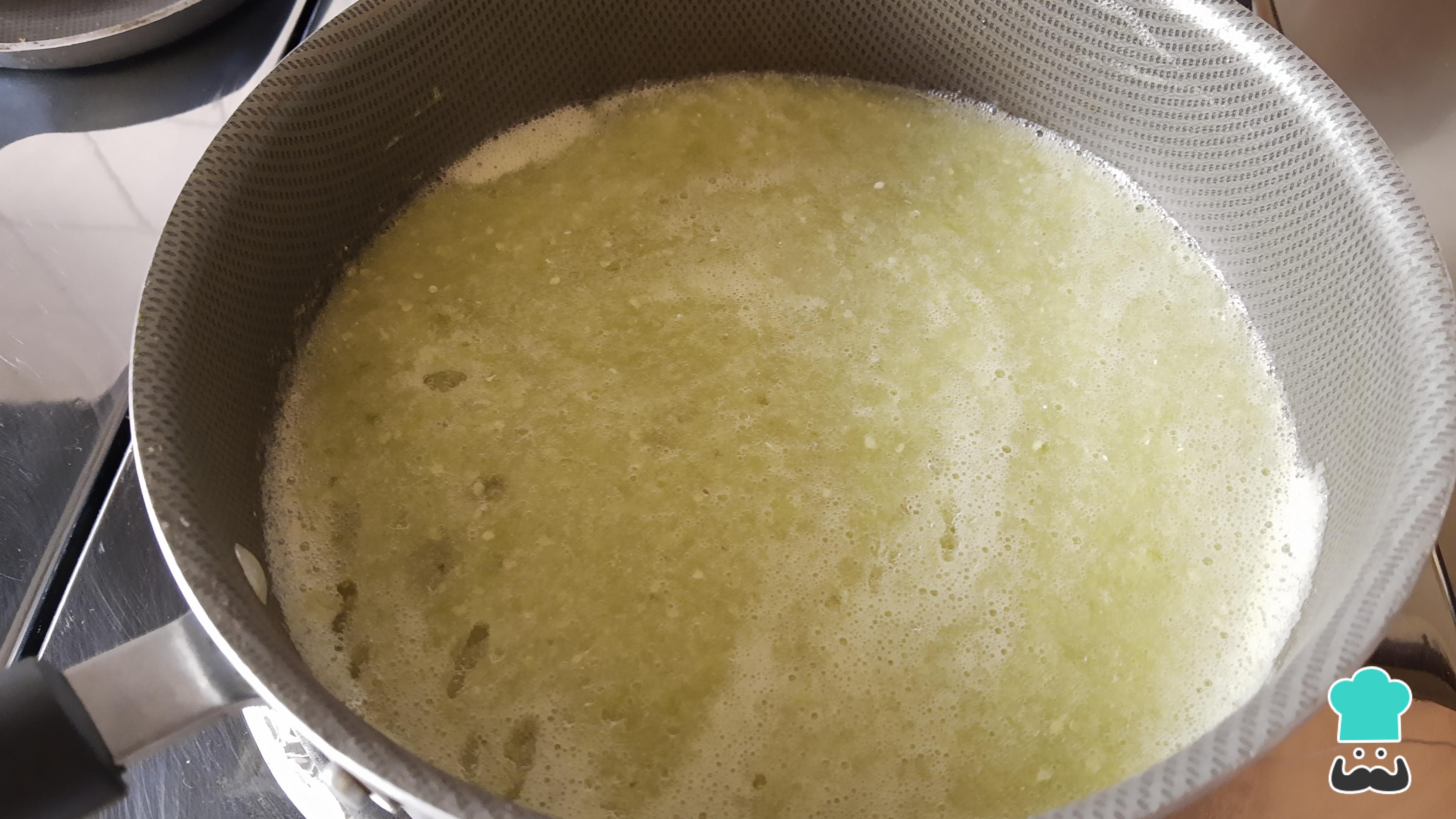 Lleva a licuar con el trozo de cebolla, los dientes de ajo y una taza y media de agua. Luego, sofríe la salsa en una olla con una cucharada de aceite y sazona con sal al gusto. Finalmente, deja hervir durante 5 minutos, aproximadamente.
