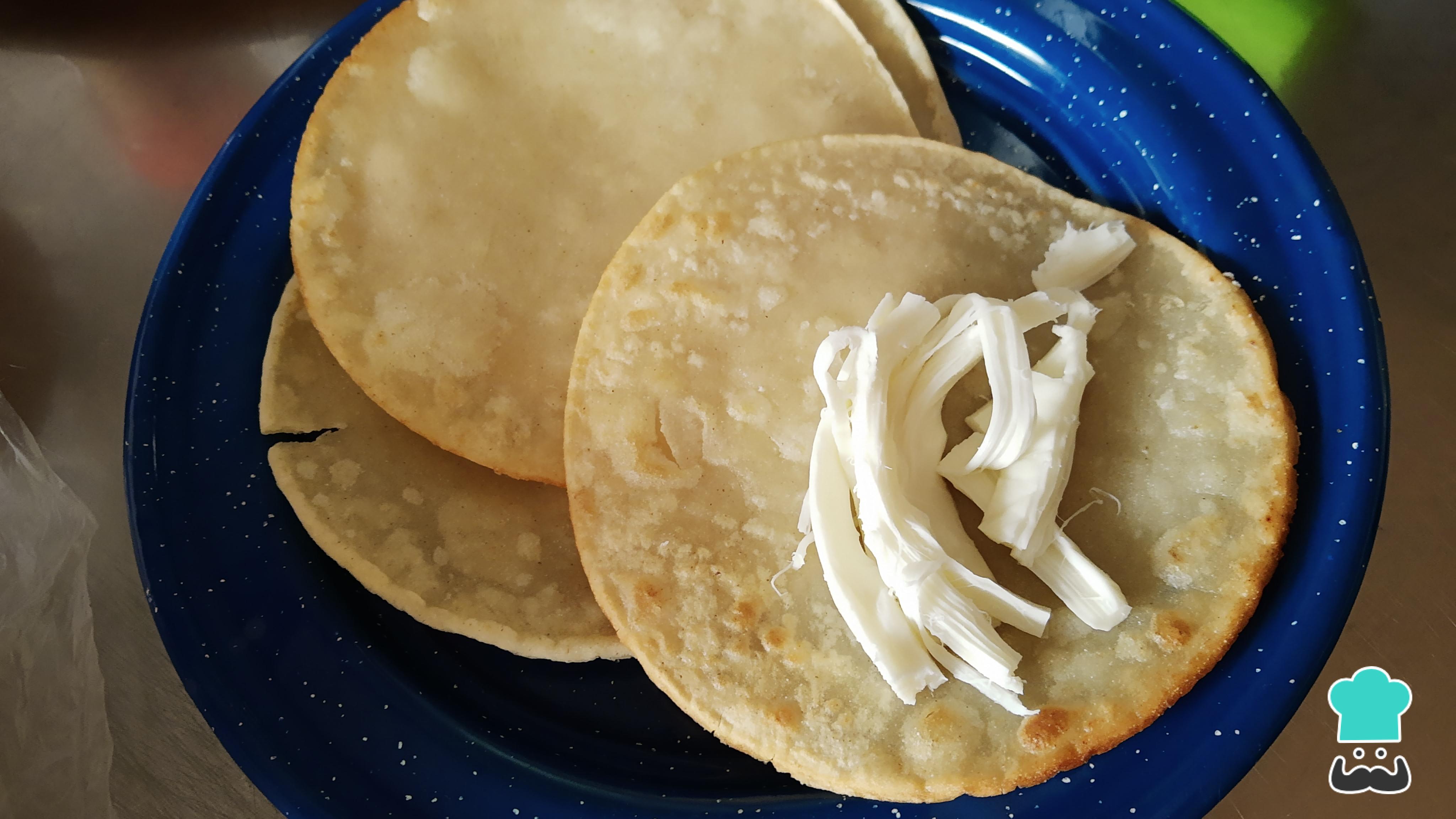 Para cocinar las enchiladas, calienta suficiente aceite para freír ligeramente las tortillas de maíz. Luego, rellena cada tortilla con queso Oaxaca o el de tu preferencia.