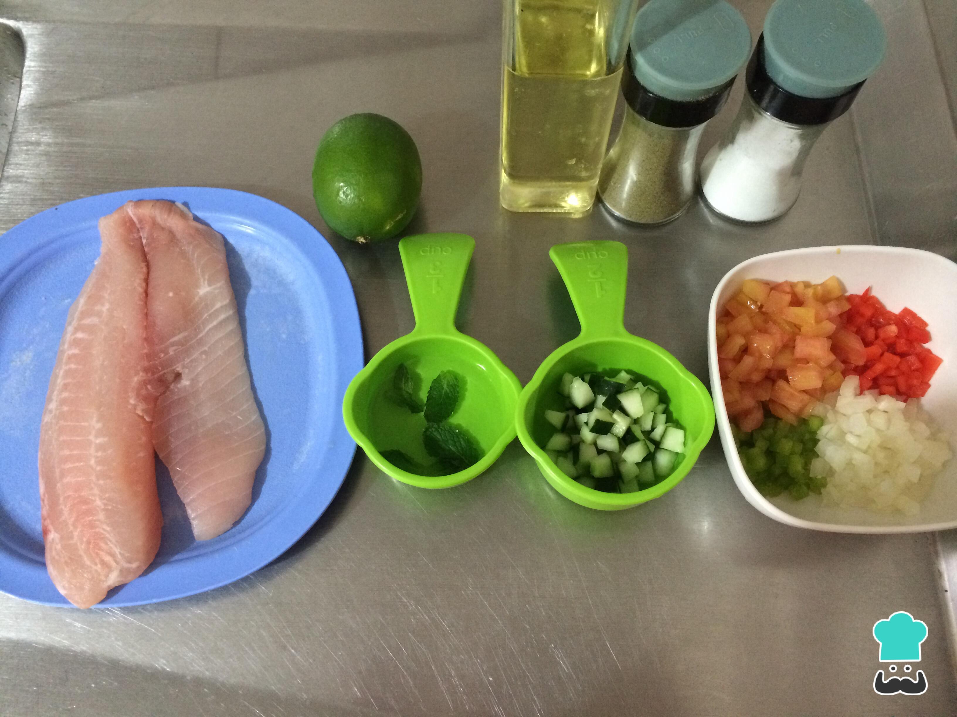 Antes de realizar este plato de pescado blanco bajo en calorías, el primer paso es alistar todos los ingredientes.