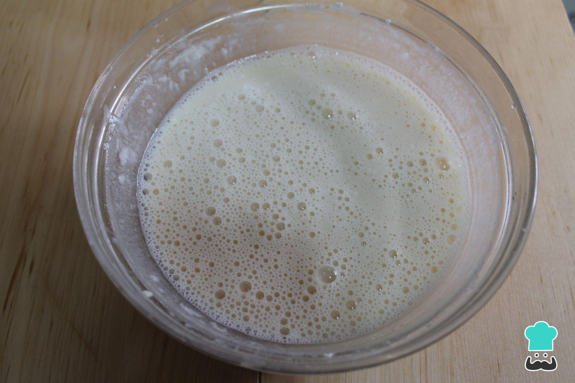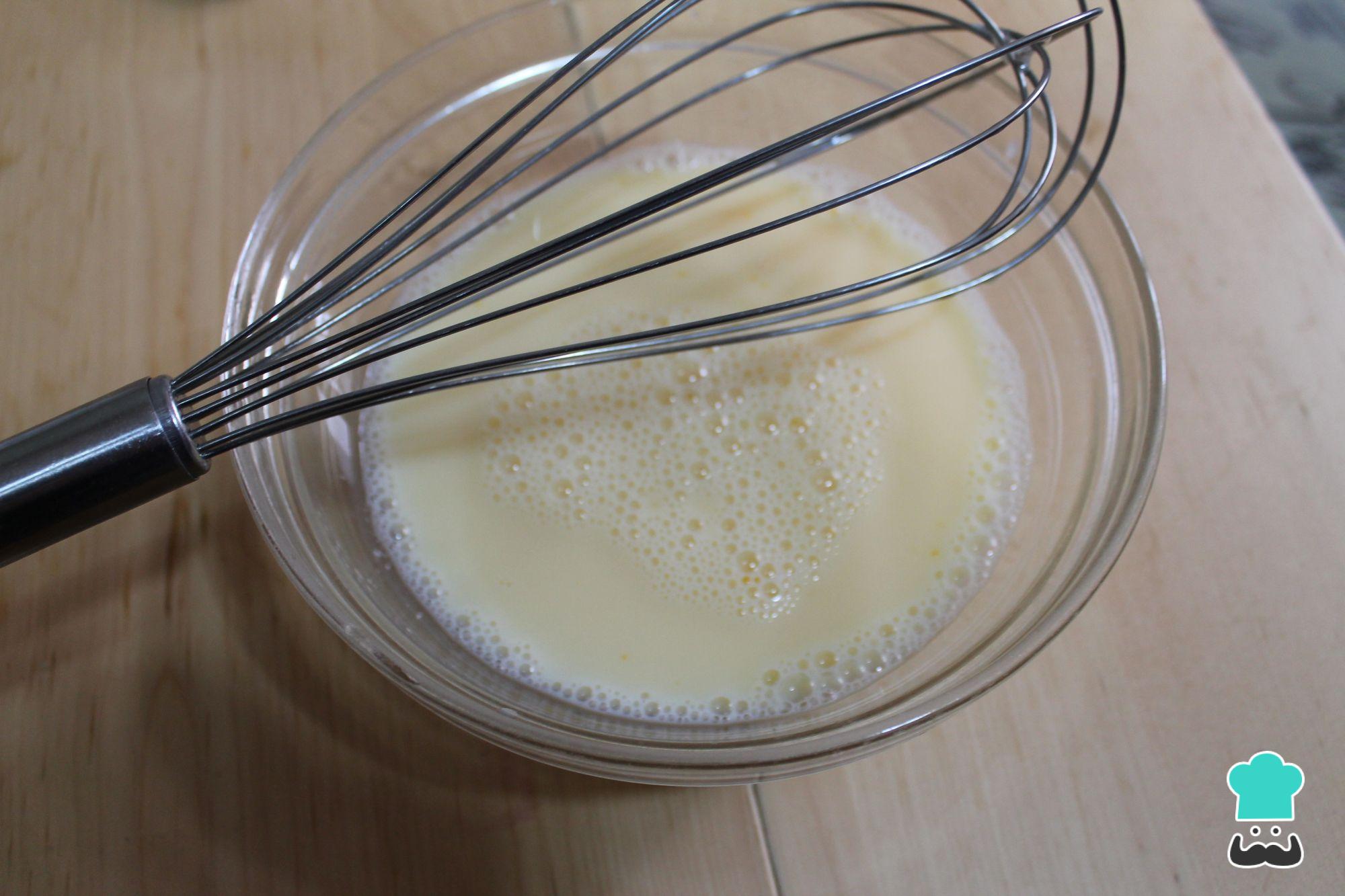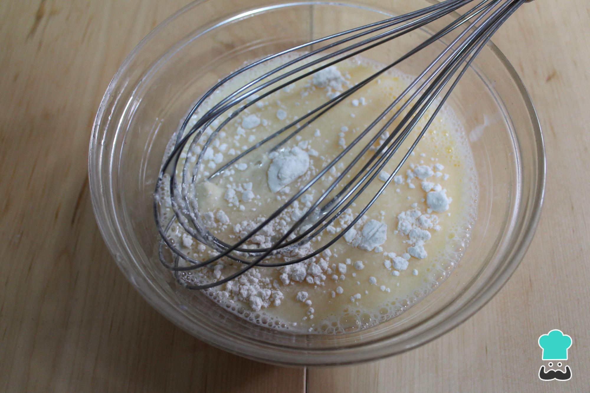 Ve añadiendo la harina mientras bates, ya sea con unas varillas manuales o eléctrica, sin que quede ningún grumo.