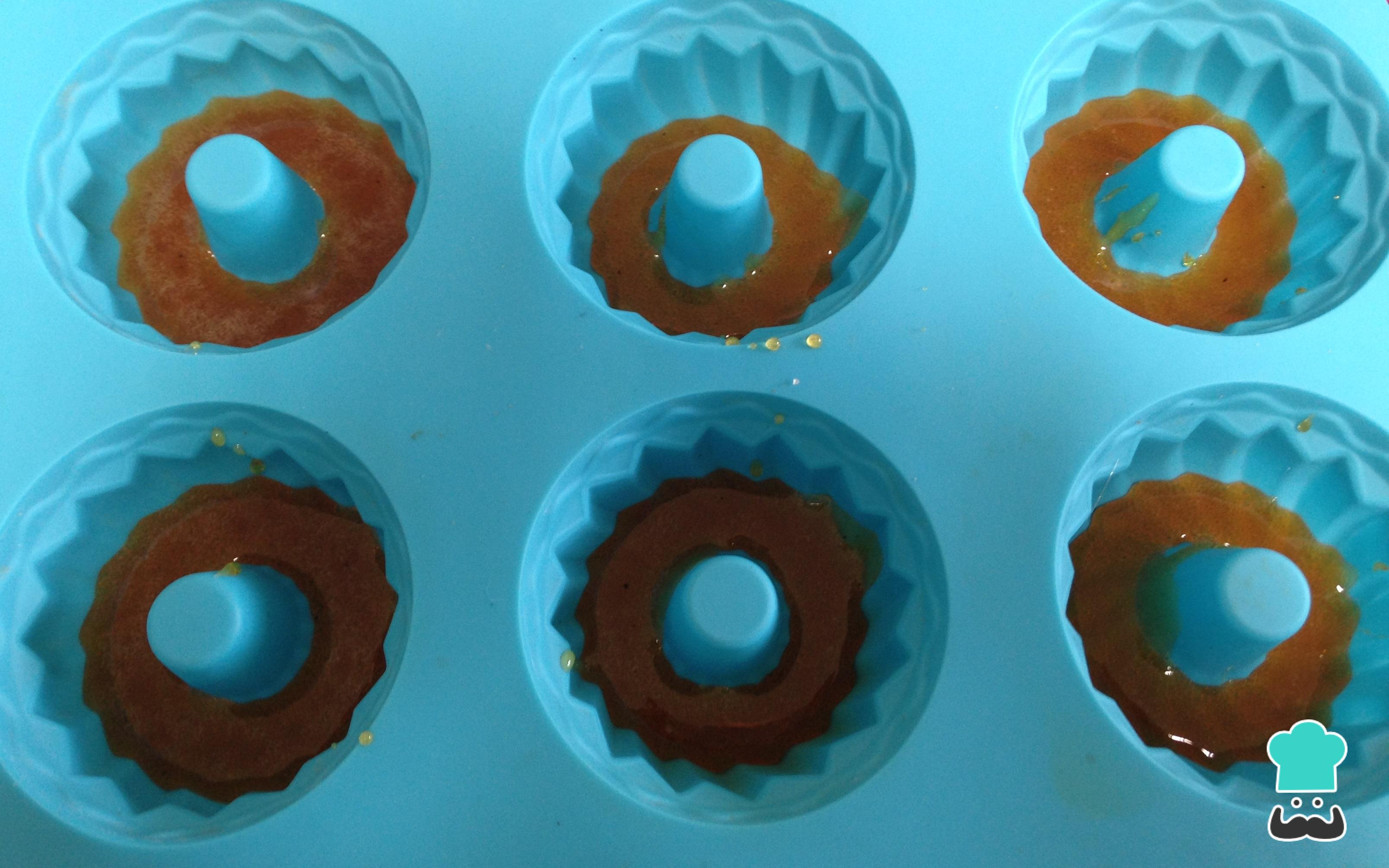 Distribuimos el caramelo en moldes individuales, o uno grande, y reservamos mientras continuamos con la preparación del flan casero al microondas.
