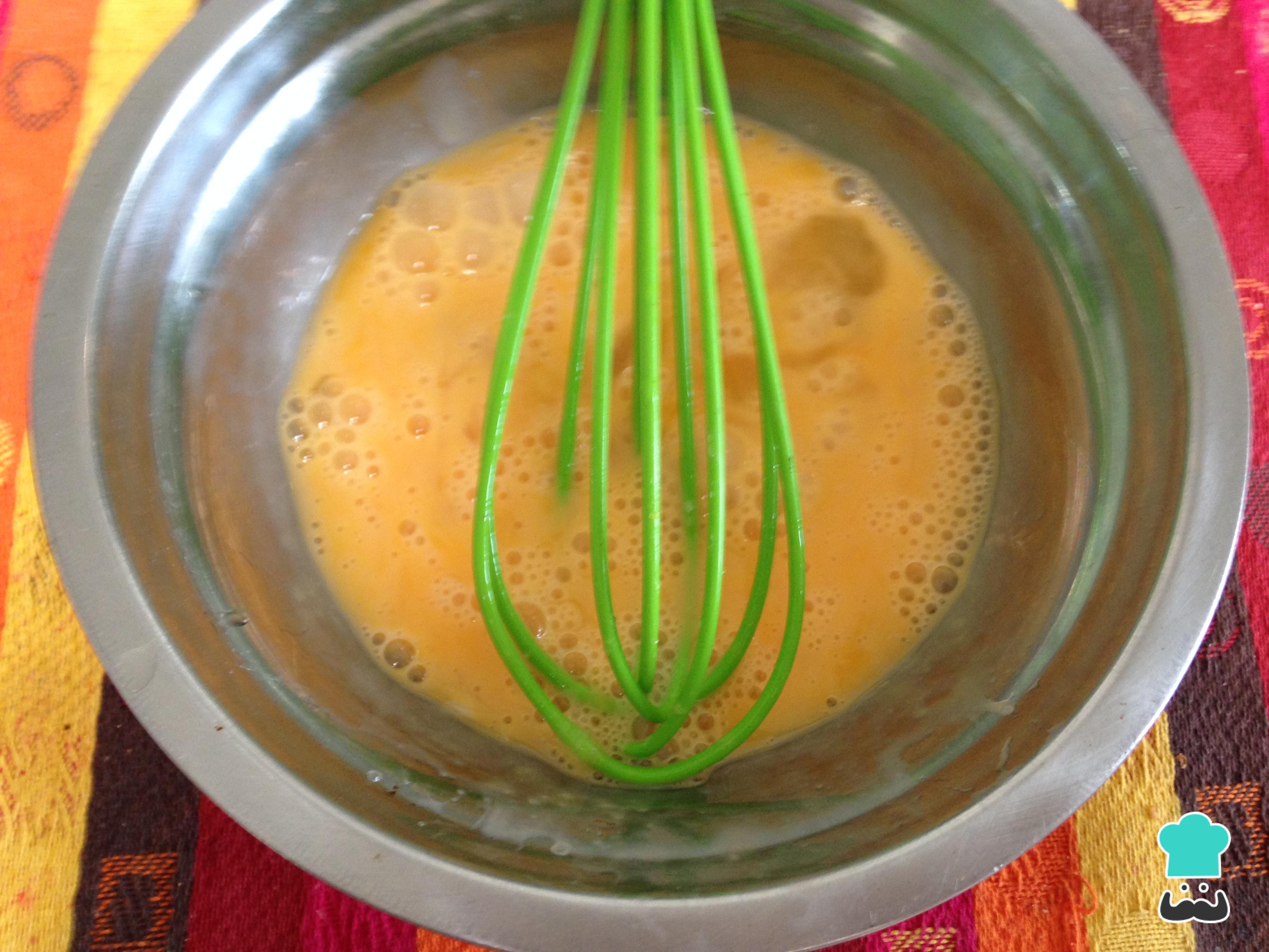 Cogemos un bol y batimos los huevos con el azúcar. Podemos llevar a cabo este paso con unas varillas eléctricas o manuales.