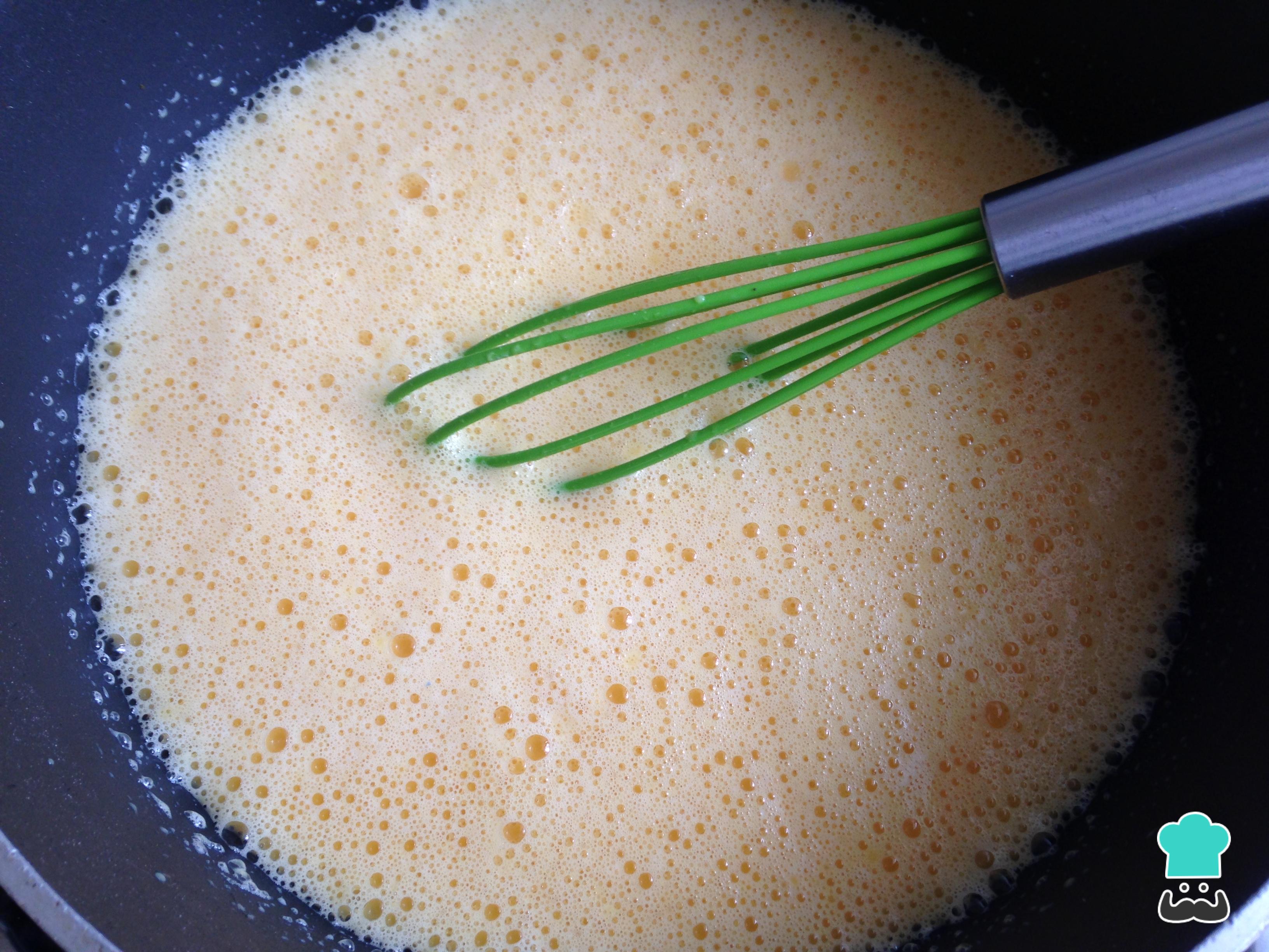 Una vez integrados los ingredientes anteriores, los colocamos en una olla, añadimos la leche, la esencia de vainilla al gusto y cocinamos hasta que alcance el primer hervor. Así, conseguiremos preparar un flan de huevo sin horno delicioso y con una textura muy suave.