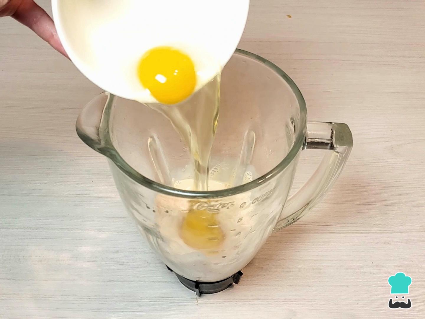 En el vaso de la licuadora, vierte la leche a temperatura ambiente, los huevos, el azúcar y la calabaza sancochada. Licúa por unos pocos segundos hasta obtener una mezcla homogénea.