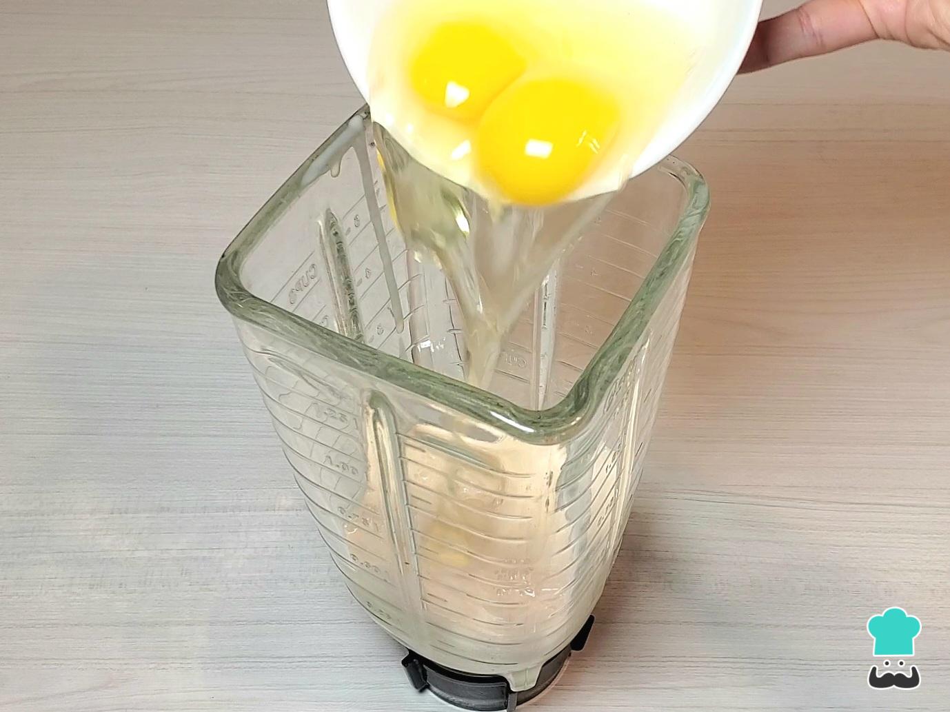 Aparte, en una licuadora, vierte todos los ingredientes: la leche, los huevos y el azúcar.