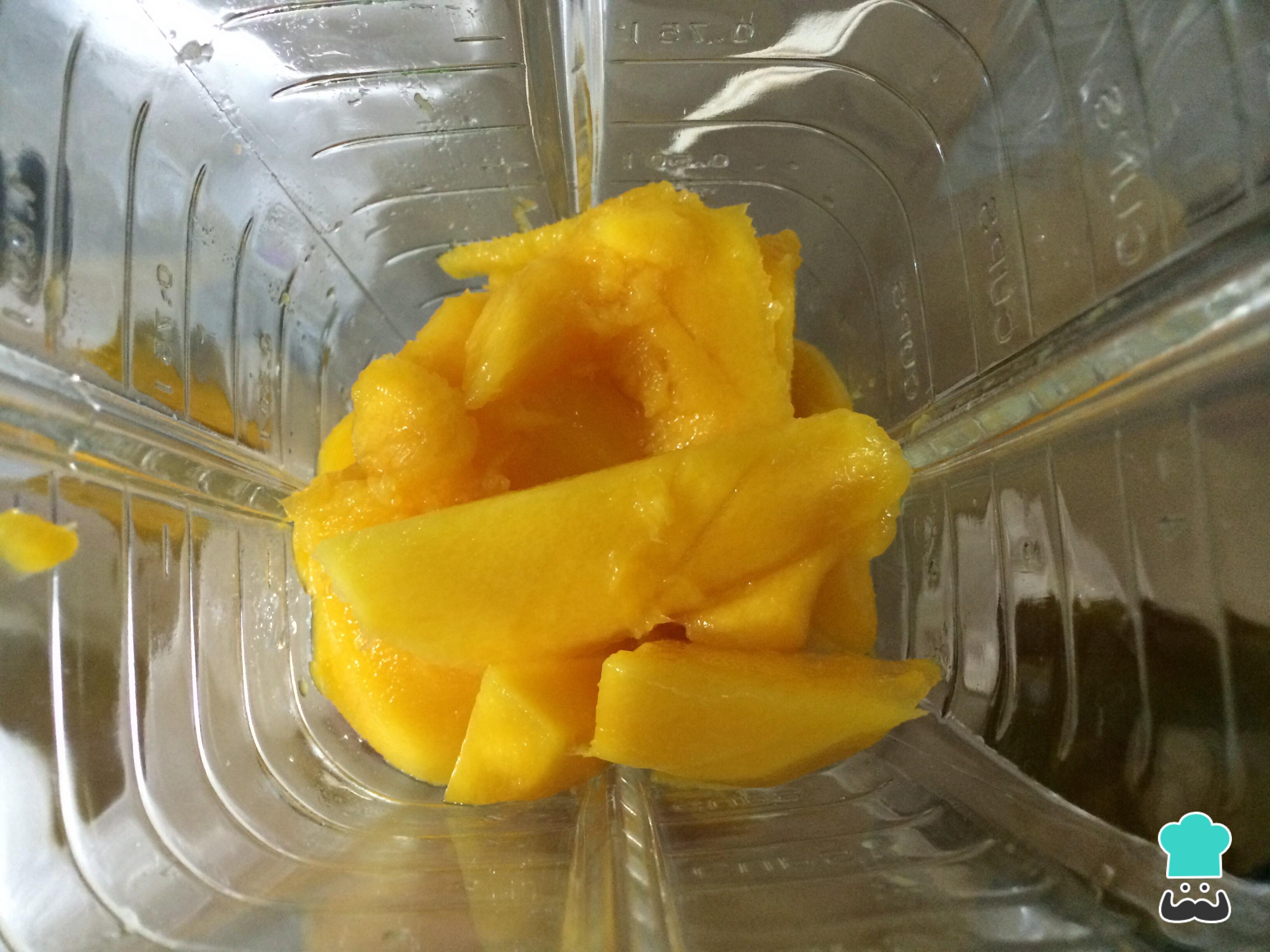 En una licuadora añadir el mango cortado en tiras, procesar hasta obtener una pulpa espesa.