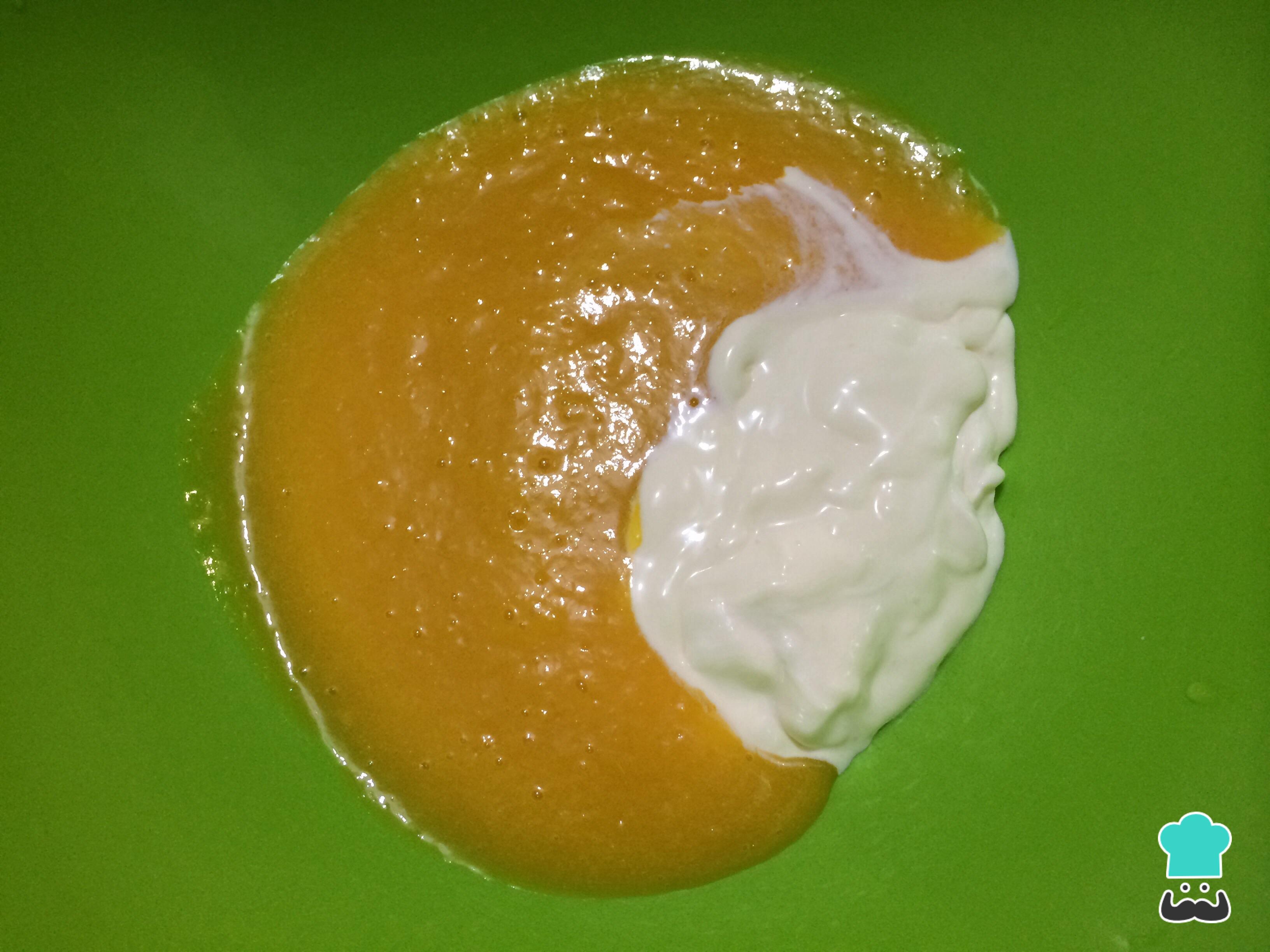 Mezclar la pulpa de mango con la crema de leche, hasta obtener una mezcla homogénea.