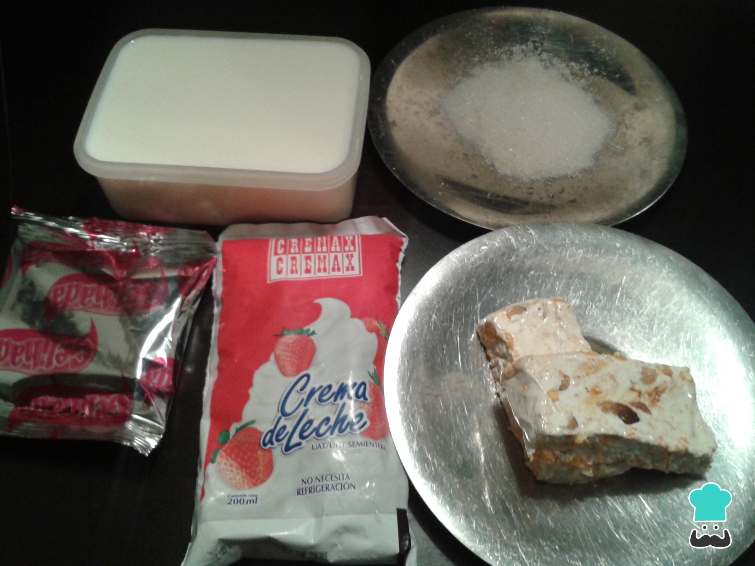 A continuación, colocar el turrón blando procesado con la leche en un cazo de fondo grueso. Calienta a fuego medio y añade el contenido del sobre de flan junto con la crema de leche.