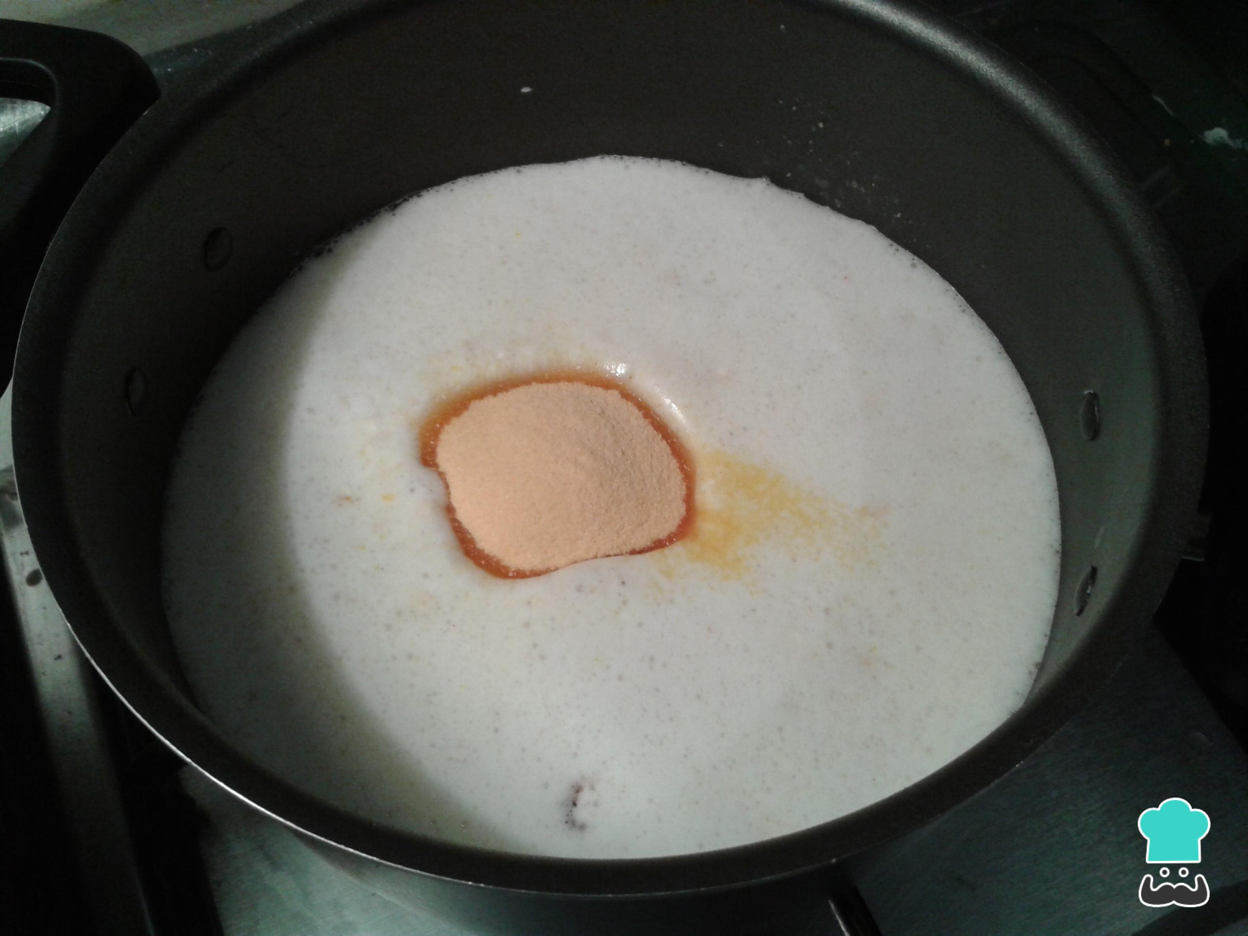 Remueve la mezcla de forma constante para que el flan quede lo mejor posible y no se forme ningún tipo de grumo. Espera que la mezcla hierva y retira del fuego.