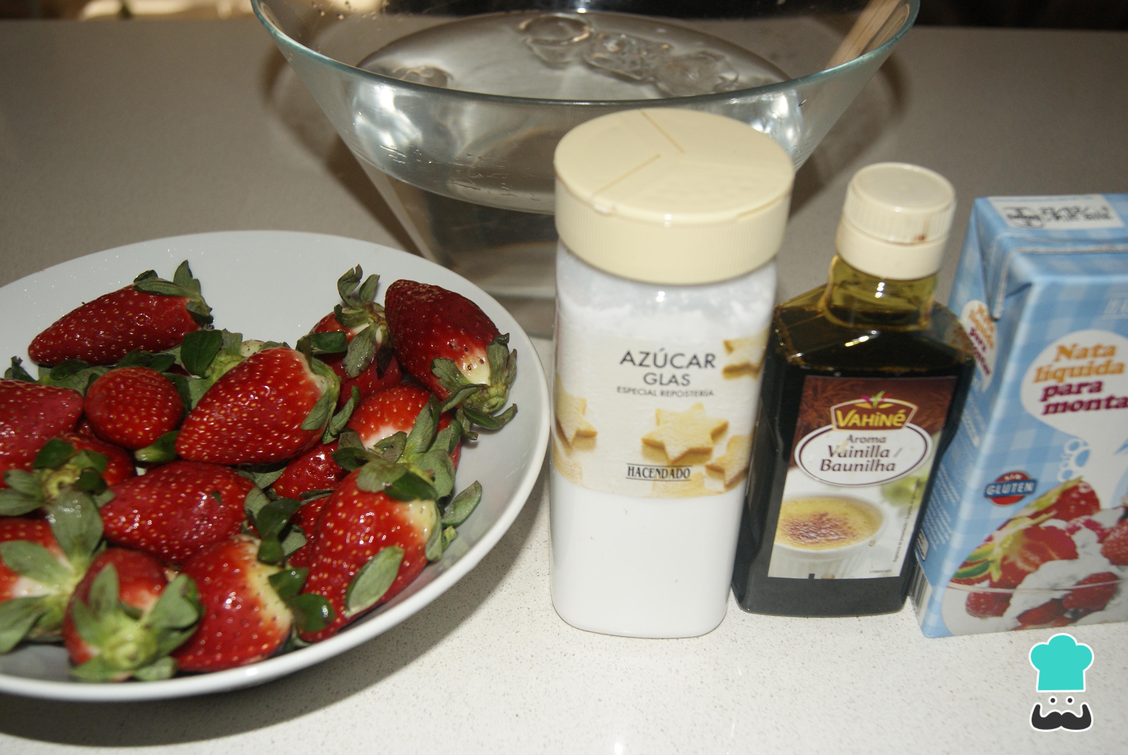 Comenzaremos haciendo esta receta de fresas con nata casera preparando todos los ingredientes que vamos a necesitar.
