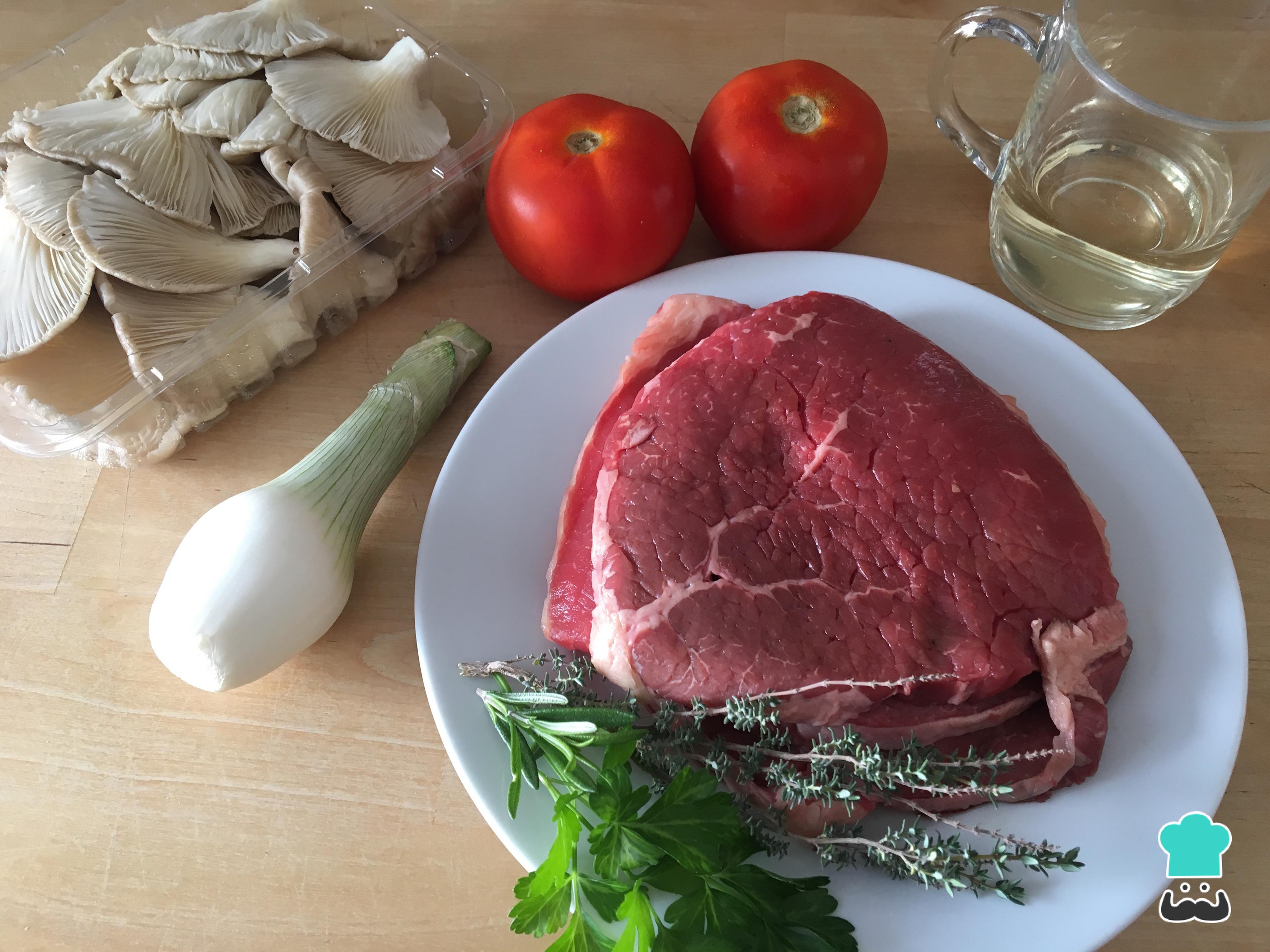 Reunimos todos los ingredientes para elaborar el fricandó con setas.