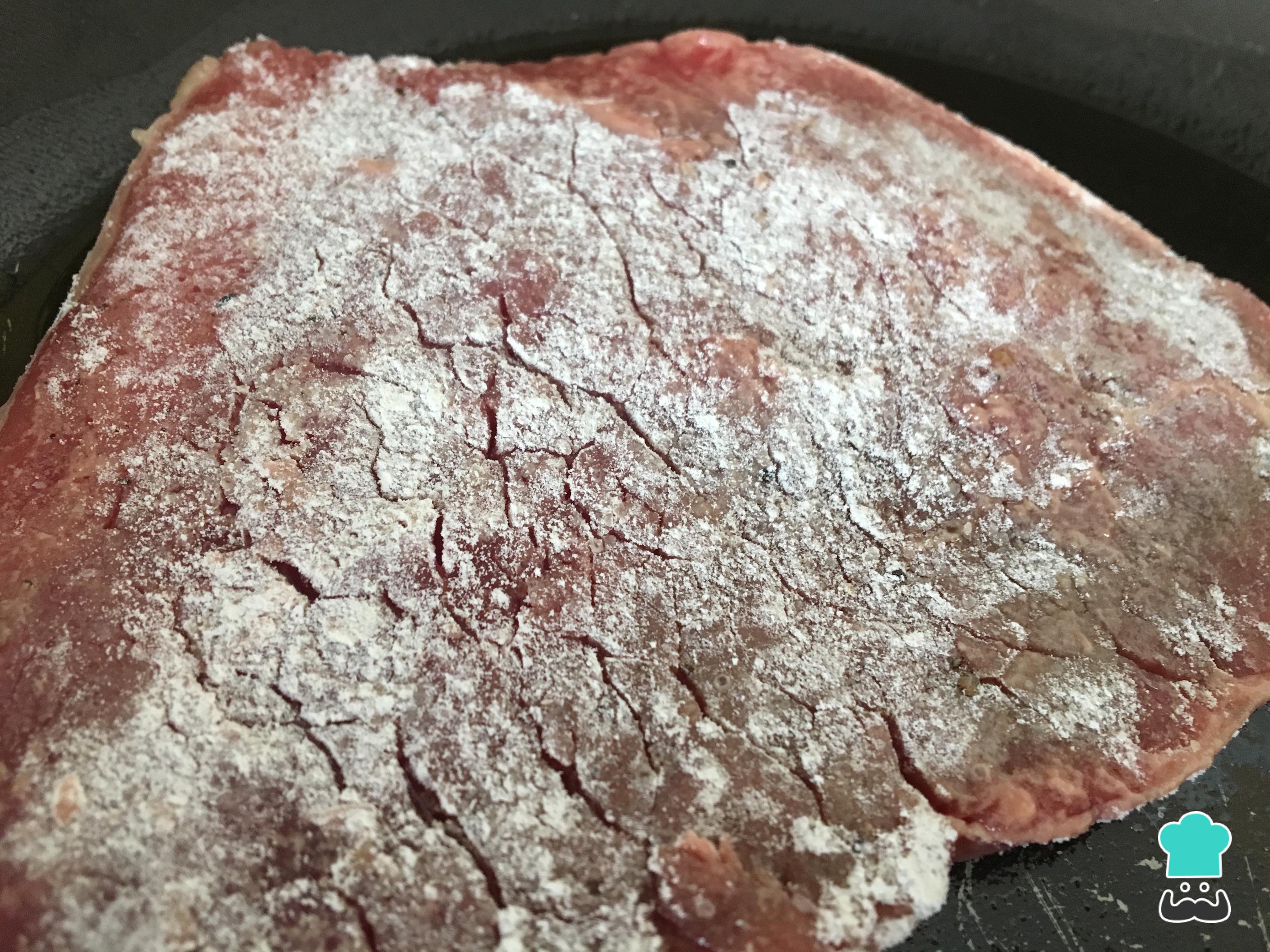 Comenzamos por enharinar los filetes y freírlos con un poco de aceite. Solo tenemos que sellarlos por ambos lados, no hace falta que se cocinen del todo. Una vez sellados, los reservamos.