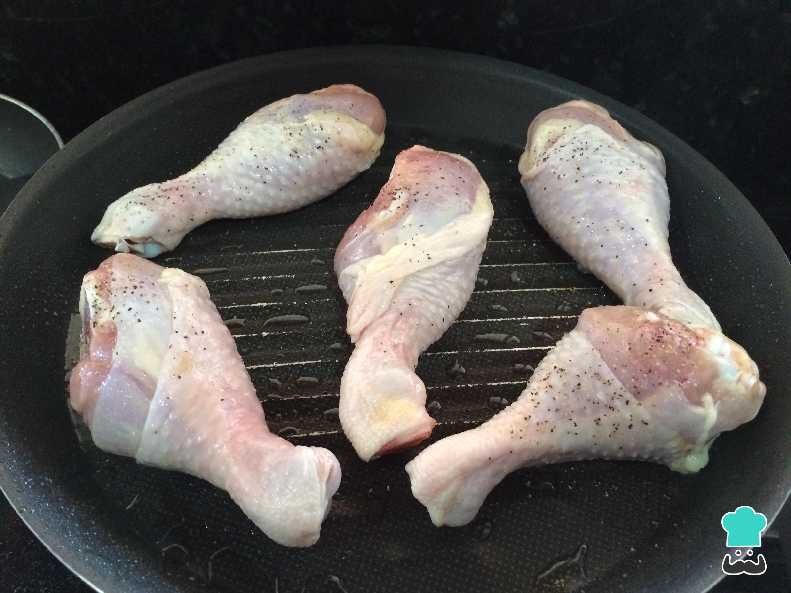 En una sartén con aceite, sellar los muslos de pollo previamente salpimentados hasta que estén dorados.