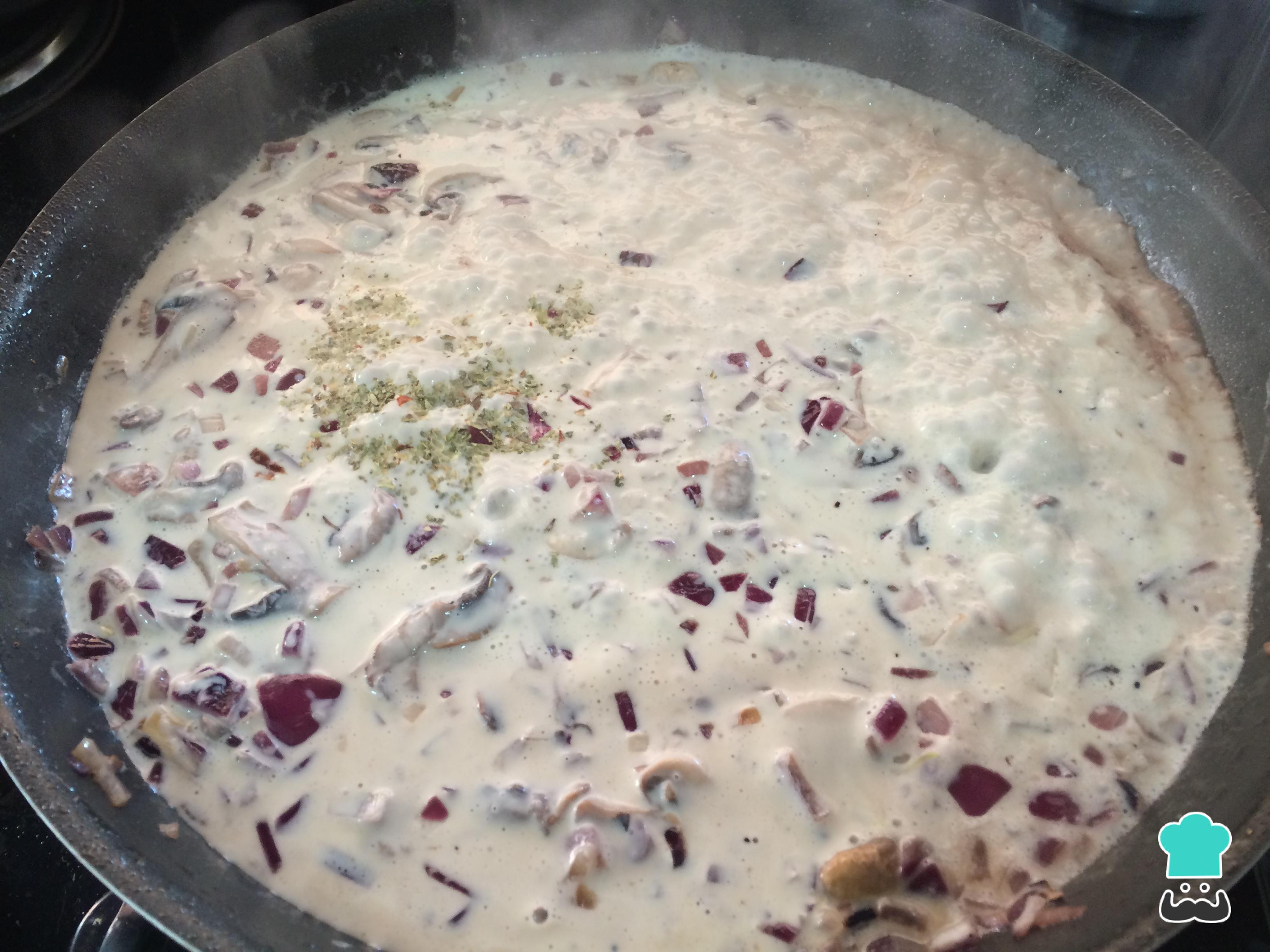 A continuación, agregar la crema de leche y cocinar durante unos minutos. Rectificar sabor con sal y pimienta al gusto.
