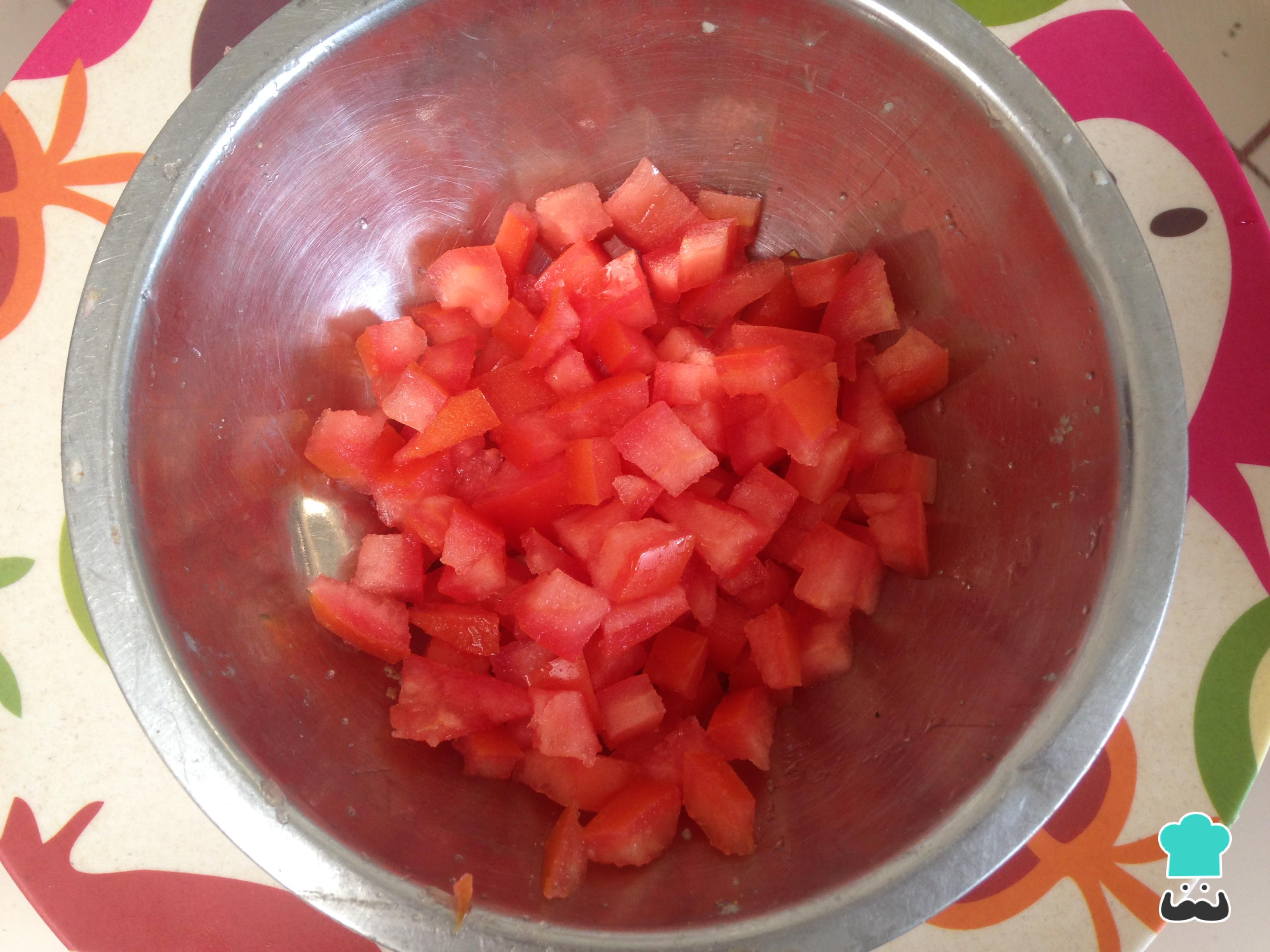 Picar el tomate en cuadros.