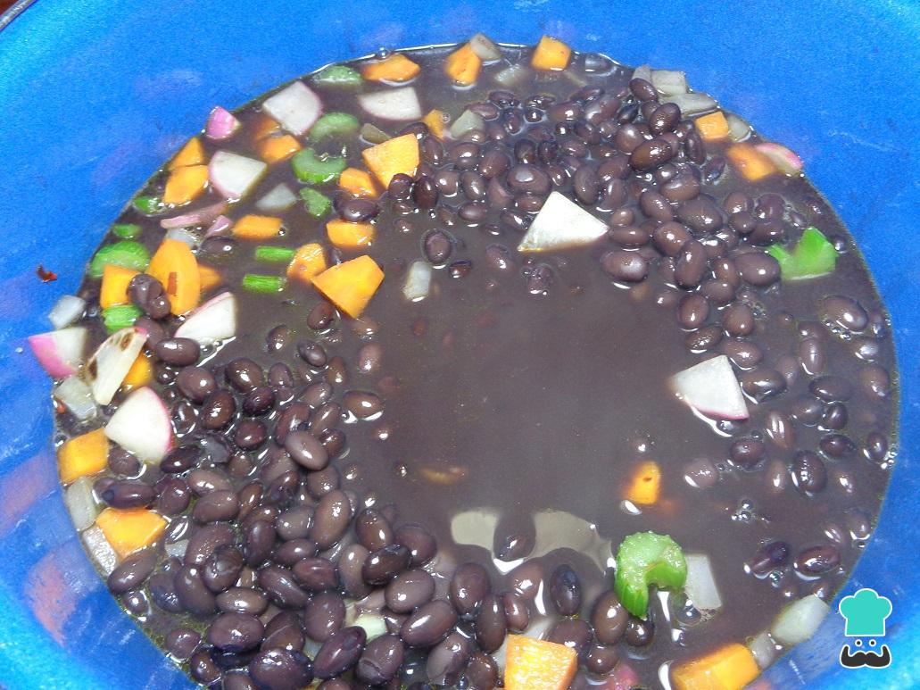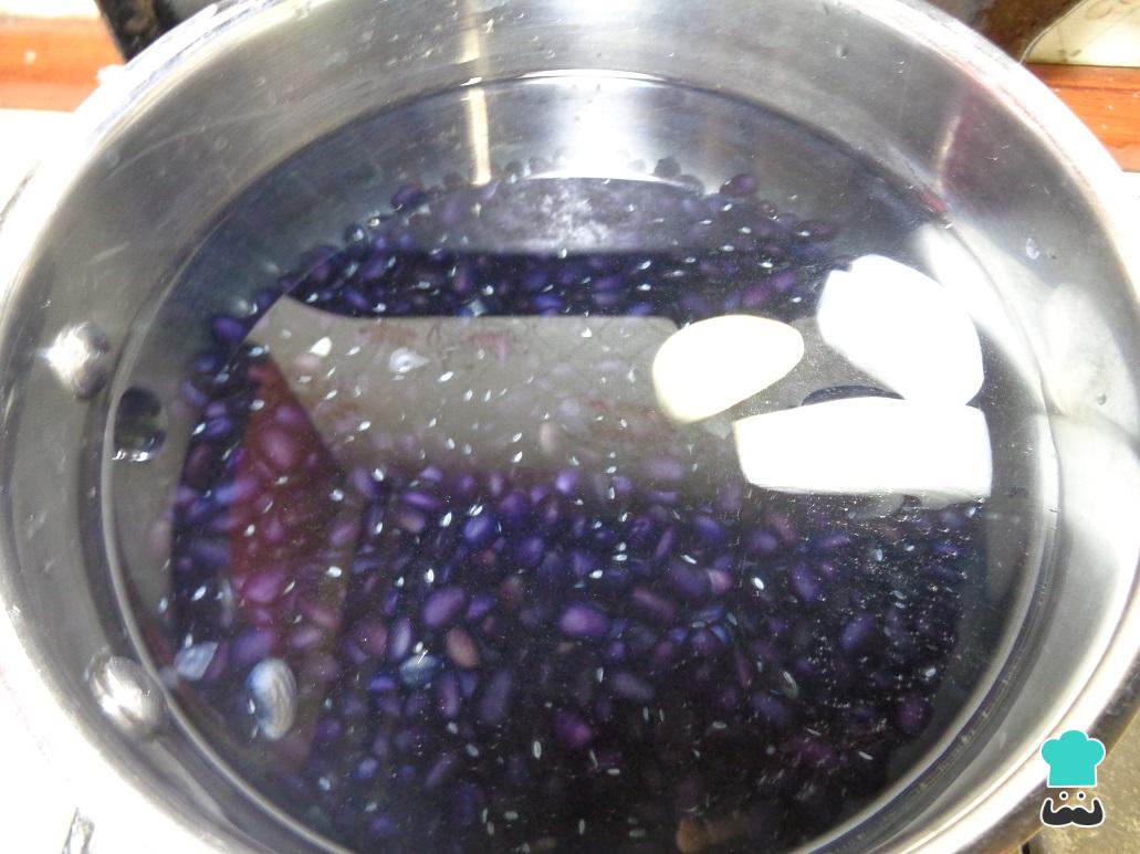 Seguidamente, lavamos los frijoles y retiramos cualquier tipo de basura que estos contengan. Después en una olla profunda colocamos un poco de agua, sal, y el ajo y media cebolla para darle sabor y los ponemos a hervir hasta que se encuentren blandos.