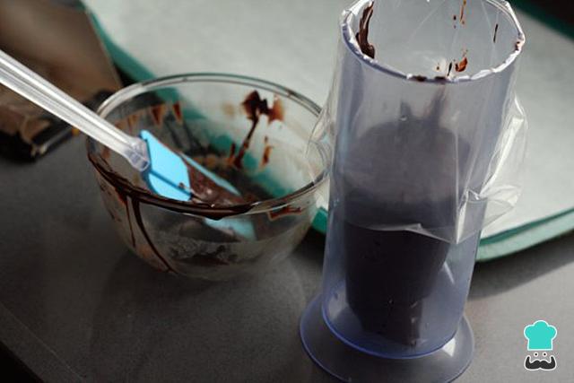 Este procedimiento es casi igual al de la cobertura de chocolate para tartas.
